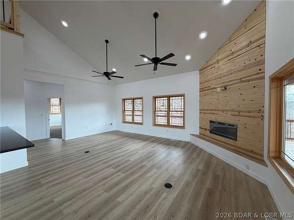Hunting, Fishing and LOVING Everyday! Wanting to get away from it all... Privacy and Seclusion is found at this Riverfront Property!! 9.7 Acres with 550+/- feet of Little Niangua Riverfront. PLUS this community adjoins that Fiery Fork Conservation Area & overlooks beautiful farmland...The Views are amazing and nature is just right out your door. Enjoy the beautiful setting from the oversized Wrap around deck. Home features Main Level Living with an open floorplan, Vaulted Ceilings in great room w/cozy fireplace, tons of windows, Walk in Pantry, Granite Countertops, Primary Suite on Main Level w/Stunning Custom Walk In Shower PLUS Jetted Tub & Double Vanity and laundry. Upper level features a Family Room that looks down into the main living room, 2 add'l bedrooms & bathroom. Lower Level Walk out basement features an add'l bedroom, bathroom, sitting area (perfect place for wetbar or keep laundry area) and HUGE covered patio. Unique Design w/ Poured Walkout Basement and Solid Concrete Piers Foundation... Built to last! All of this & the Riverfront is amazing- with a level & cleared area that feels like your own park. Imagine taking a float trip & floating back to your own property.