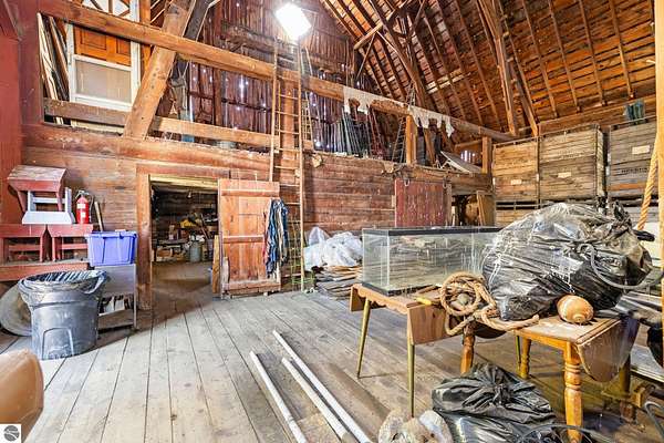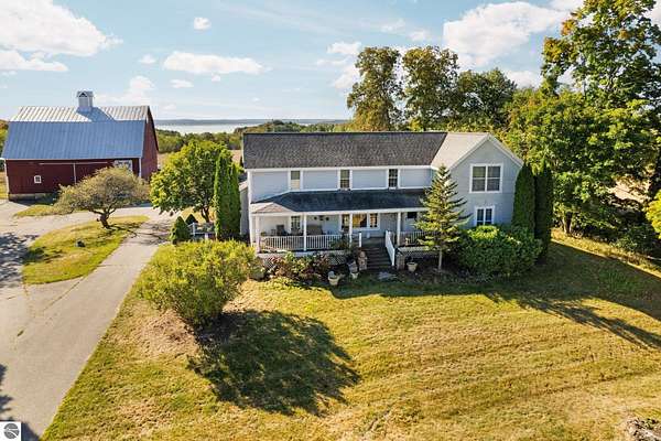 Situated on Old Mission Peninsula with sweeping views of Old Mission's pastoral beauty, this once in a lifetime property and opportunity offers 80 pristine acres of protected farmland under Peninsula Township's PDR program, ensuring it remains undeveloped. Originally built in 1900, this totally renovated farmhouse pairs historic charm with modern convenience, while the massive red barn, 4-car detached garage with a foreman's office, and multiple utility buildings provide plenty of functional space. Additional features include a pole building for storage, equipment sheds, a cold storage facility, and a fruit/food cellar. Perfect for those seeking a blend of space, privacy, and farming potential. Within close proximity to the best wineries, restaurants, parks, and beaches that Old Mission Peninsula has to offer- located just minutes from downtown Traverse City!
