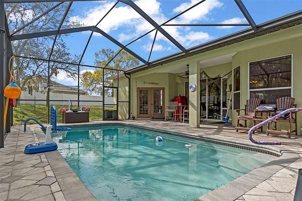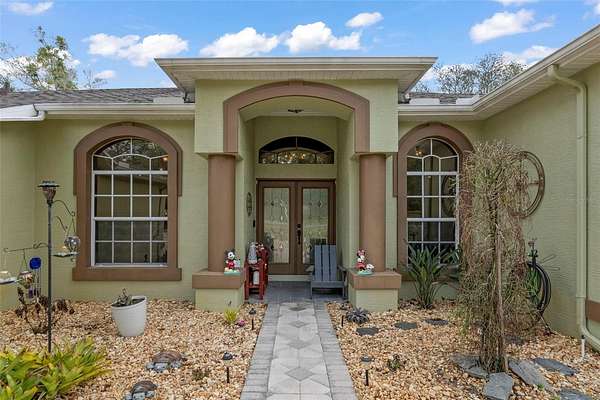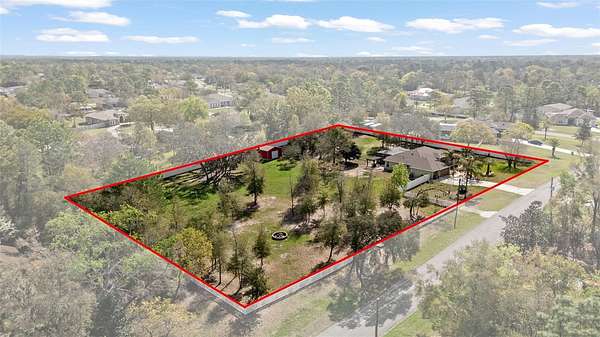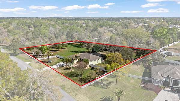 Stunning 3 bedroom, 2 bathroom block POOL home with a 3 car garage + 400sqft shop, in the heart of Spring Hill Florida. Come on over and check out your beautiful pool home situated on a beautiful fully fenced in 2 acre property. This home offers space, privacy, and comfort while still being conveniently located near shopping, dining, and everyday amenities. As you arrive, you will immediately appreciate the expansive property featuring white vinyl privacy fencing surrounding the entire 2 acres, creating a private and peaceful setting. The home also includes a spacious attached 3 car garage along with a 20 x 20 shed on a concrete pad located in the backyard, providing plenty of room for storage, hobbies, or additional workspace. Step inside and you will be greeted by high ceilings throughout that create an open and airy atmosphere. The kitchen is beautifully designed with high end soft close cabinetry and stainless steel appliances, offering both style and functionality for everyday living and entertaining. Your primary suite is a true retreat, featuring two massive walk in closets equivalent to the size of a bedroom alone. Your master bathroom is also spacious including a soaking tub, dual sink vanities, and a walk in tiled shower designed for relaxation and comfort. Step outside and enjoy the fully screened in pool area, perfect for relaxing, entertaining guests, or simply enjoying the peaceful views of your expansive property. With two full acres of land, there is plenty of space for outdoor activities, additional structures, or simply enjoying the privacy and tranquility that properties like this provide. Homes offering block construction, pool, a 3 car garage, and 2 fully fenced acres in this desirable area rarely become available. Come on over for a swim and check out this beautiful property. (ROOF 2021, Shed 2022)