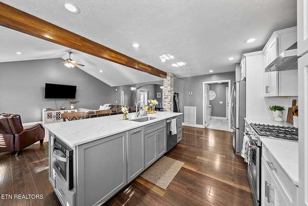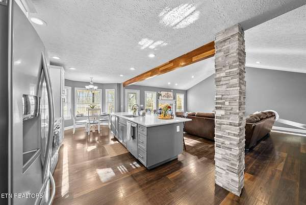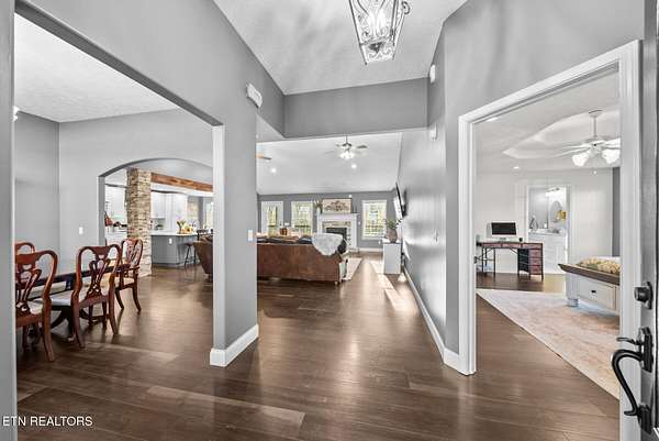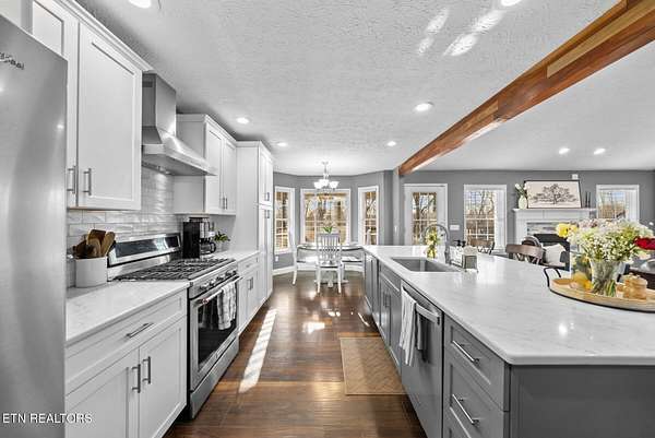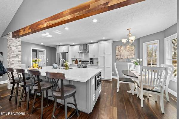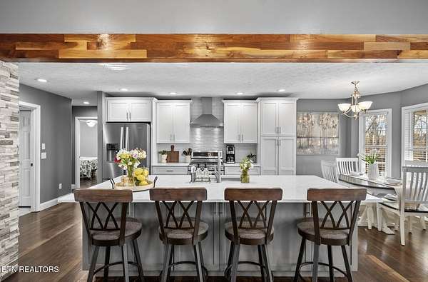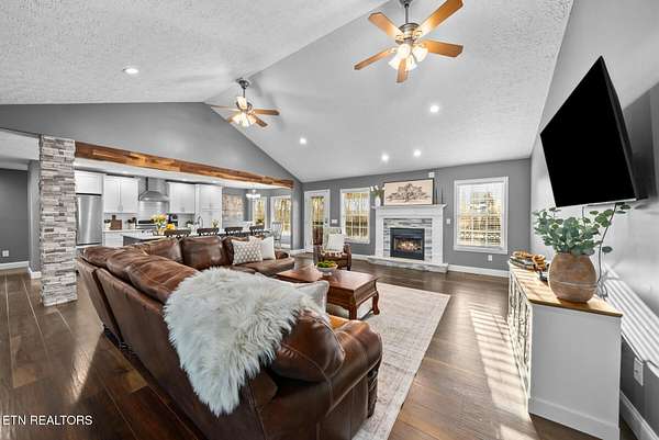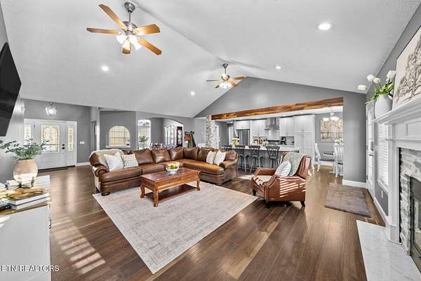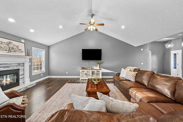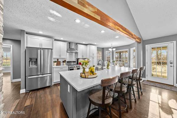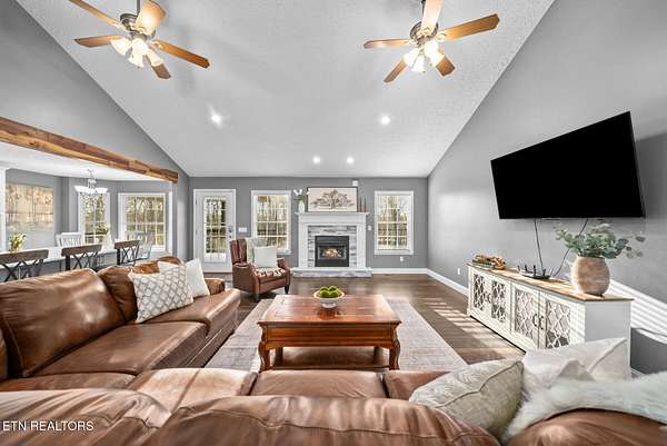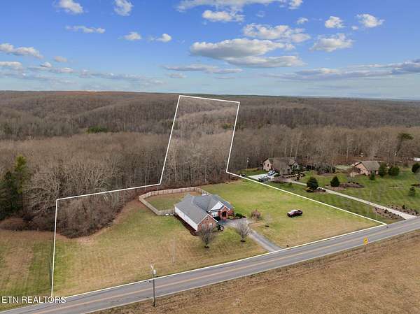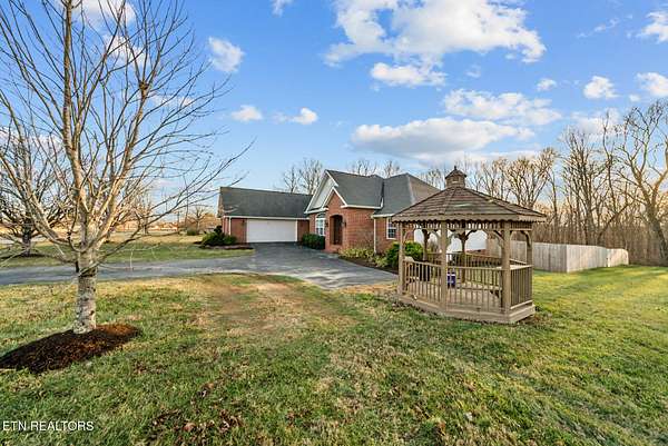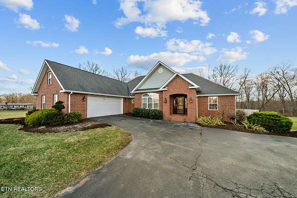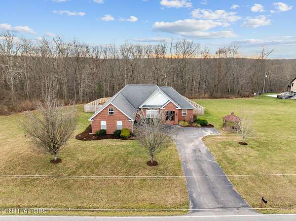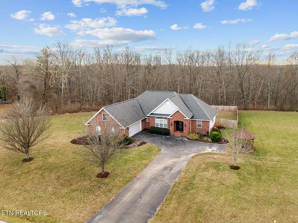 Nestled on 3.59 private, wooded acres in Crossville, TN, this beautifully maintained brick home offers the perfect combination of privacy, modern updates, and functional living space. Featuring 3 bedrooms, 2 bathrooms, and an attached garage, this property is ideal for buyers seeking peaceful country living with upgraded interiors. A long driveway leads to a classic brick exterior surrounded by mature trees and landscaping, creating a serene first impression. Inside, you'll find an open-concept floor plan with vaulted ceilings, recessed lighting, and hardwood flooring throughout the main living areas. The spacious living room is centered around a gas fireplace with custom mantel and surround, while large windows provide abundant natural light and scenic backyard views. The updated kitchen (2019) is designed for both style and function, featuring: Quartz countertops, white cabinetry with ample storage, stainless steel appliances, tile backsplash, and a large island with seating and prep space. The adjoining dining area offers direct access to the back deck, perfect for indoor-outdoor entertaining, while a decorative wood beam adds character and definition to the space. The primary suite is generously sized and includes a tray ceiling, hardwood flooring, and flexible space for additional furnishings. The en-suite bathroom features: Double quartz vanity, updated fixtures, and a tiled walk-in shower with glass enclosure and built-in bench. Two additional bedrooms are located on the opposite side of the home, providing privacy and separation, along with a full guest bathroom offering an oversized double vanity and updated finishes. Step outside to enjoy a partially covered back deck overlooking a fenced backyard, with additional acreage extending beyond - ideal for pets, recreation, or future expansion. The wooded surroundings enhance both privacy and natural beauty. RECENT UPDATES & UPGRADES include: HVAC system (1 year old), tankless gas water heater (~2.5 years old), encapsulated crawl space (2021), new front door (2022), epoxy-coated garage floor, and a gas heater in garage for year-round use. This home reflects pride of ownership, thoughtful renovations, and long-term value, making it a standout option in the Crossville area. Buyer to verify all information deemed important prior to submitting an offer. *Please note: The property is equipped with audio/video recording devices. Buyers and agents should be aware that recording may be active during showings. Animals have been removed during showings.*