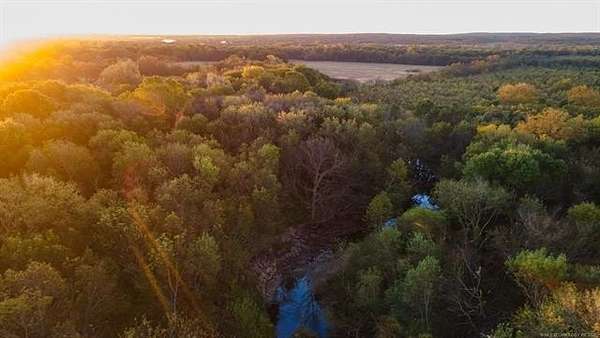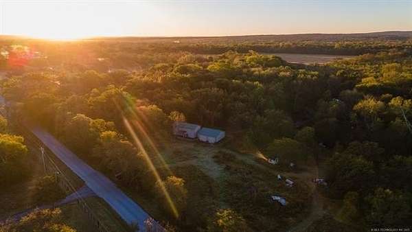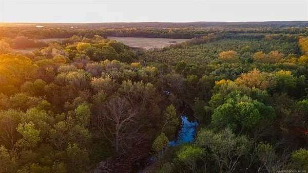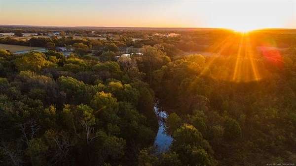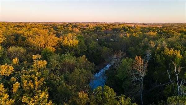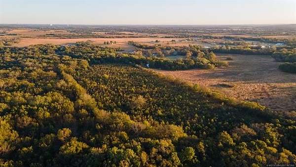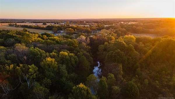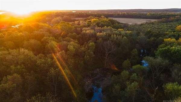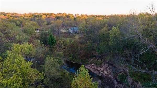 Envision your dream home by the serene flow of full-time Duck Creek, winding through 40 acres of Oklahoma paradise in Mounds-this is the Duck Creek Retreat, blending urban access with rural freedom. Just 20 min to Tulsa Hills, 12 min to Glenpool, 25 min to Okmulgee, and 30 min to Downtown Tulsa, it's perfect for city workers craving country life. Paved roads, East Central Electric, fiber internet, and Okmulgee Rural Water #6 make it build-ready, with an aerobic septic in place. A 30x40 steel shop (concrete floors, 12' doors) and a 20x40 steel shell (former barndominium, ready for shop or rebuild) add versatility. Mature oaks, walnuts, and hickory line the creek, while the back 40 is a wildlife mecca-ideal for hunting deer, turkey, or fishing bass/catfish. Portions in flood zone, but the build site and shops are safely elevated. No HOA/restrictions-perfect for hunters, anglers, or builders seeking a creekfront haven. Picture evenings by the fire pit with creek views or trail hikes under ancient trees-your Tulsa-area retreat awaits.