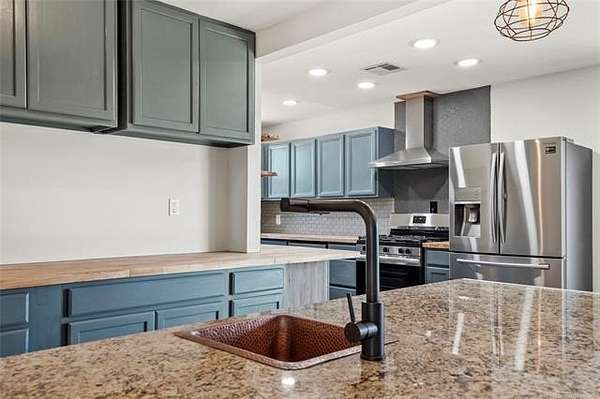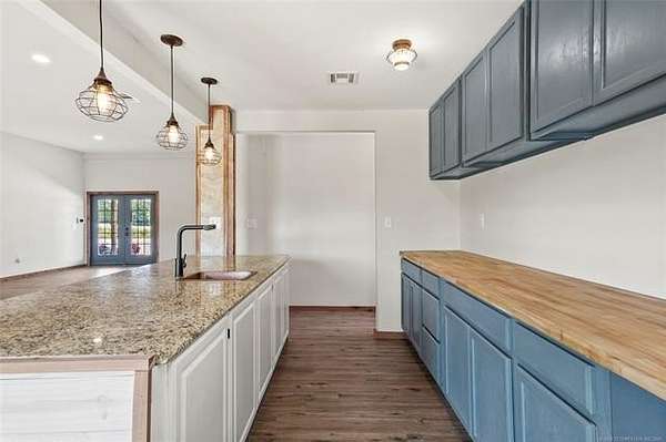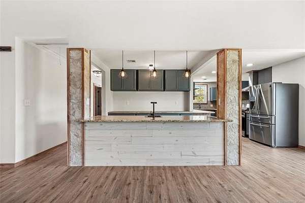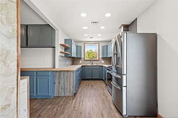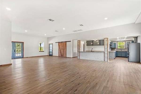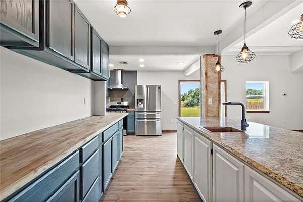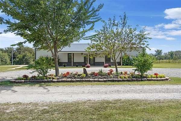 Here's your chance .. Back on market at no fault to seller . This Stunning Barndominium on 8.9 m/l Acres - Fully Renovated & Move-In Ready! Experience the perfect blend of modern comfort and country charm in this beautifully renovated 4-bedroom, 2-bathroom barndominium, nestled on 8.9m/l picturesque acres. Step inside to a spacious living room featuring tall ceilings, a custom accent wall, and a cozy fireplace, all open to the gourmet kitchen -- an entertainer's dream! Enjoy a large center island with a bar sink, gorgeous butcher block countertops, stainless steel appliances, a gas stove, coffee bar, and abundant cabinet and counter space. The home also offers a dedicated dining area, an office/flex room, and a large utility room. Each bedroom includes a walk-in closet, while the oversized master suite features a luxurious private bath with a double vanity, custom tile work, and a large walk-in closet. Barn-style doors and cedar trim throughout add a rustic - modern touch, and the second full bath includes a beautifully tiled walk-in shower. Everything in the home is brand new with a fresh, modern renovation. Enjoy outdoor living with a covered front porch and back patio, thoughtfully landscaped surroundings, fruit trees, a peaceful pond, and a storage building -- plus stunning sunset views and frequent wildlife sightings. All the tranquility of country living, just minutes from town!