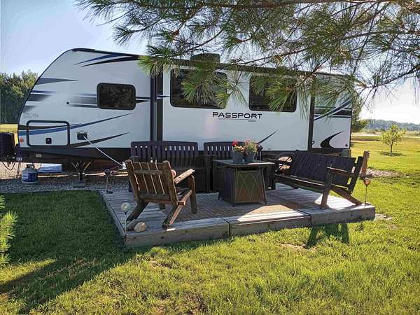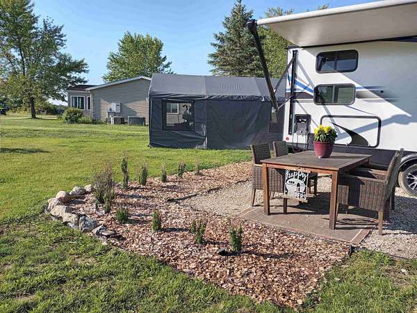 Large Sugar Springs, 1/3-acre pull-through, camping or building lot. Walk to the water in several locations and enjoy the common areas. state land. Lake access is available in several locations near the site. Two spacious white crushed concrete driveways with plenty of parking space. Freshly seeded and nicely landscaped. Features include: 20 x 30 crushed concrete, 6-inch framed camper pad with geothermal strengthener. Large front patio, great for watching the sunrise, and a 12 x 11 raised back patio for watching sunsets. All utilities are in place, including two sewer hook-ups, a well with well house, electric, and cable. Private and quiet area, perfect for a weekend getaway. After a day on the water, create memories with family and friends sitting around the illuminated glow-in-the-dark fireplace for evening campfire gatherings. There is a large open common area in front of and behind the property. Camper is not included. Enjoy all the amenities Sugar Springs has to offer, including 2 All Sport Lakes, 15 beach clubs, 18 hole championship golf course with a golf simulator, restaurant & pub, indoor heated swimming pool, fitness center, walking trails, tennis and pickleball courts, bocce ball, and a grass fly-in air strip and more! Enjoy our year-round activities and events in Sugar Springs! Just 2.5 hours from the Detroit area.
