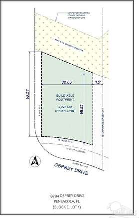 From Sorrento Rd, take a right on to Innerarity Point Road. Redfish Harbor will be down about 1/2 mile on your right. Take a right on to Pelican Place, Go to the end and take a left onto Osprey. Lot will be on your right.