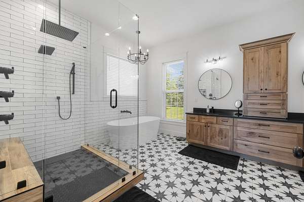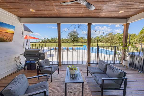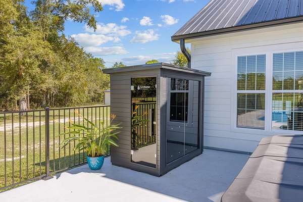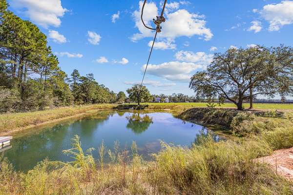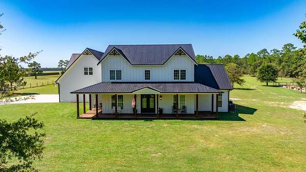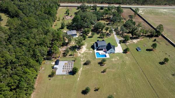 Experience the perfect blend of luxury and country living at 13796 State Hwy 81 in Ponce de Leon, FL. This newly built 5 bedroom, 4 full bath, 2 half bath farmhouse sits on 20 fully fenced acres with upscale finishes, functional design, and thoughtful details throughout. The chef's kitchen showcases white shaker cabinetry with under-cabinet lighting, a custom vent hood, pot filler, butcher block counters, and a large island overlooking the open living area. A walk-in pantry with custom cabinetry and a coffee bar with beverage fridge completes the space. The primary suite, privately located on the main floor, features a vaulted, beamed ceiling, natural light, and a spa-style bath with standalone soaking tub, glass-tiled rainfall shower, and custom walk-in closet. Upstairs, two bedrooms offer ensuite baths and custom closets, while a bonus loft/bedroom above the 3-car garage includes its own AC, storage, and full bathideal for guests or an office. The laundry room includes custom cabinetry and counterspace. The 3-car garage provides a storage closet, half bath, and direct access to the pool patio with a 7.5-ft saltwater pool, hot tub, sauna, and cold plungeperfect for relaxing or entertaining. The 3,340 sq.ft. barn offers three horse stalls with automatic waterers and floor drains, an unfinished bath with plumbing and laundry hookups, and a spacious upstairs office with AC, LVP flooring, and storage. Multiple access points, sliding barn doors, and ample equipment storage make it both beautiful and practical. Outdoors, enjoy five cleared pastures with water access at each, full perimeter fencing (including an 8-ft privacy fence in front and down left side), a 1/2-acre stocked pond with floating dock, and a range of amenities: pole barn, equipment barn, animal shelters, RV hookups, treehouse with AC, chicken coop, greenhouse, raised garden, round pen, feed house, and pump house. This property combines modern luxury, craftsmanship, and self-sufficient living in a private countryside settinga true Florida homestead masterpiece.