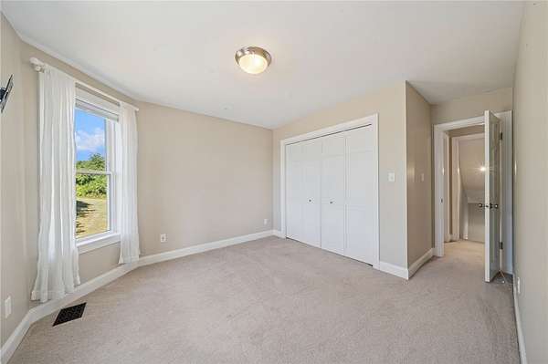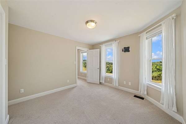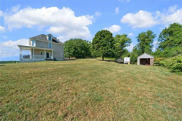 Welcome to this updated modern farmhouse on 2 acres in California School District! Enjoy breathtaking views from the covered front porch overlooking rolling fields or the large covered back porch that wraps around the home. Inside, the main level offers a stylish kitchen with stainless steel appliances, a full bath with a walk-in shower, cozy living room, and separate dining area. Upstairs you'll find three bedrooms and a newly renovated bathroom with double sinks. A unique feature of this home is the staircase through the third bedroom leading to the finished attic, perfect for a 4th bedroom, office, or playroom. The attic retreat is complete with its own split unit for heat and A/C, creating a quiet and comfortable getaway. This home combines farmhouse charm with modern updates, all surrounded by spectacular country scenery. *Red Barn is not on the property and is not included*