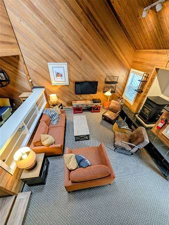 Unbeatable location at Apex Mountain Resort! This updated 3 bedroom, 2.5 bathroom mountain home offers the perfect year round retreat - whether you're looking for a full-time residence, family getaway, or short-term rentals. Backing directly onto the iconic skating loop and just a short walk to the base of the mountain, this home delivers both convenience and charm. The main level features an open-concept living space with soaring vaulted ceilings, updated lighting, and a cozy pellet stove - ideal for relaxing after a day on the slopes. The second floor offers two bedrooms, a 4-piece bathroom, and a bright loft lounge that overlooks the main living area. On the top level, the spacious primary bedroom includes a 4-piece ensuite and plenty of privacy. Turnkey opportunity! Brand new furnishings included!!