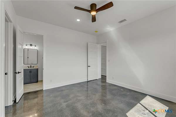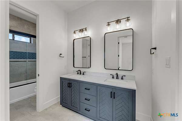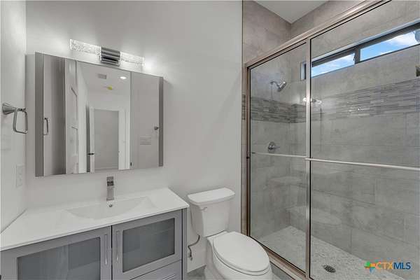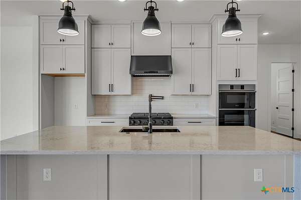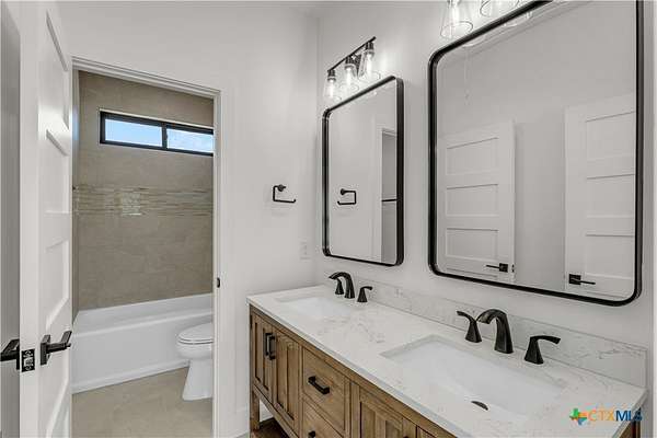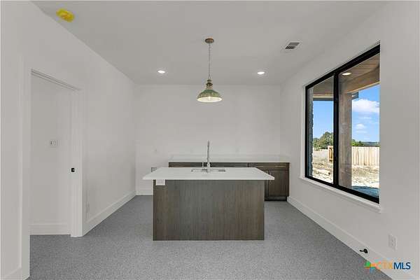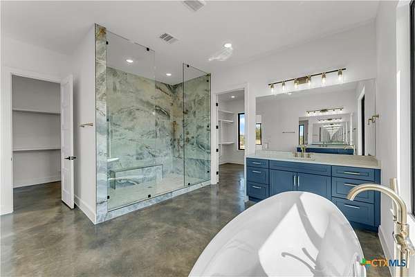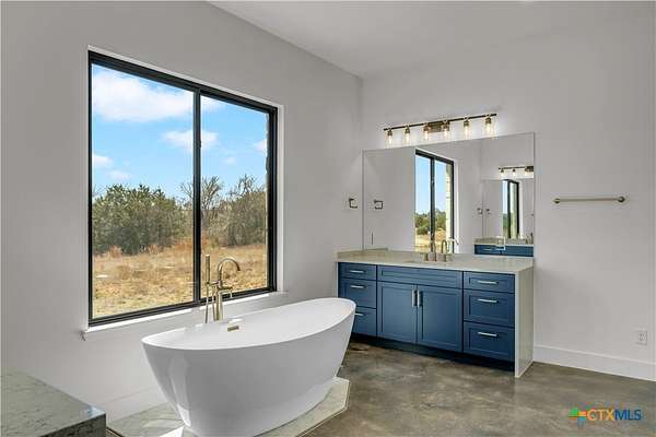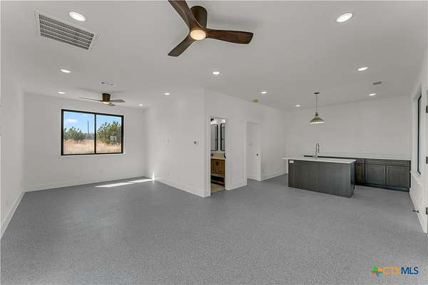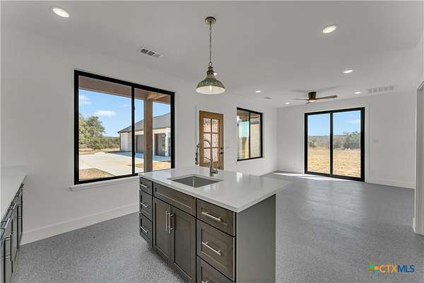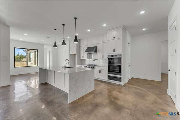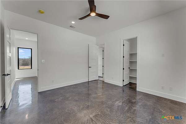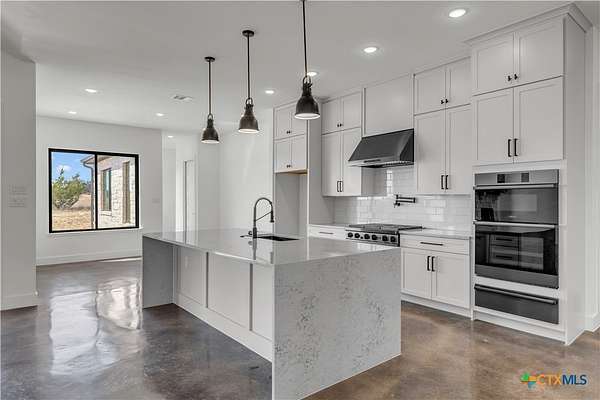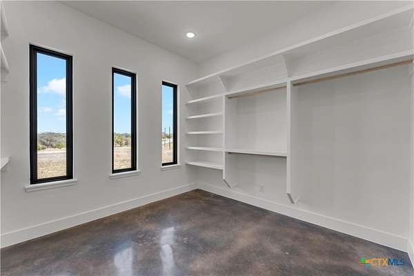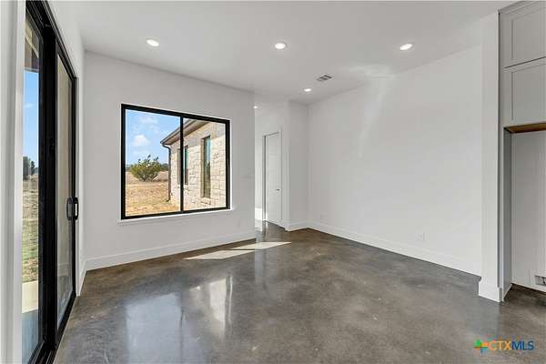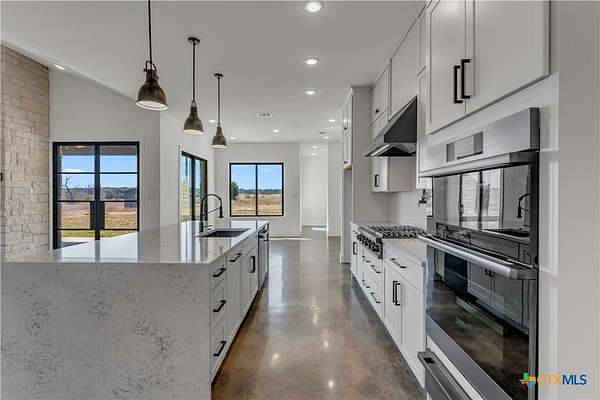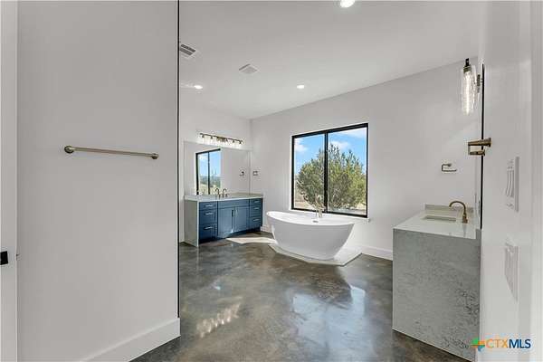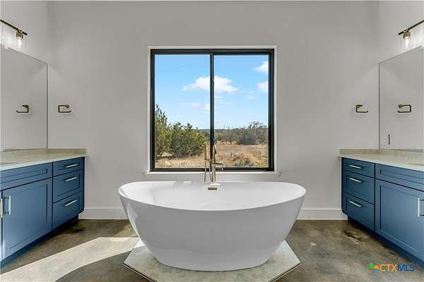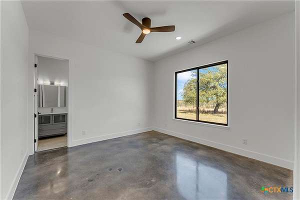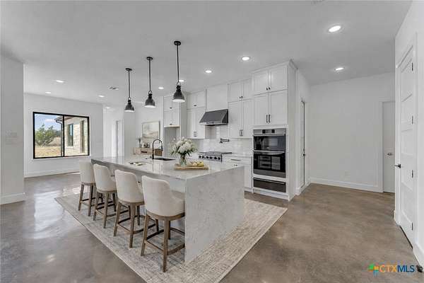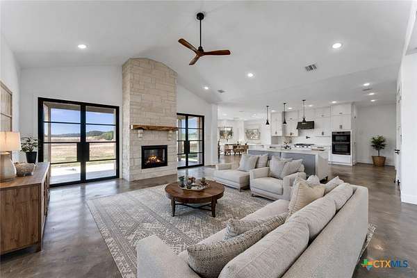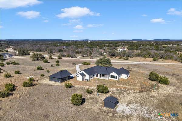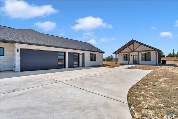 Completed in late 2024, this exceptional new construction custom property located in the gated subdivision of Cloudwood Ranch sits on 5 acres and features two homes along with a three-car garage with remote access. The main residence offers 4 bedrooms, 4 bathrooms, and approximately 3,460 square feet of living space, complemented by a separate detached casita featuring 1 bedroom, 1 bathroom, and approximately 700 square feet. Designed with both functionality and luxury in mind, the main home includes high ceilings, large custom PELLA windows providing abundant natural light, and stained concrete flooring throughout with tile in bathrooms only. The open concept living area is anchored by a quartz waterfall island and includes a gas fireplace, gas stove with pot filler, warming drawer, built-in microwave, wall oven, custom cabinetry, and a butler's pantry, creating a kitchen ideal for everyday living and entertaining. A dedicated office with a full bath provides flexibility for guests or remote work. The primary suite features a large walk-in shower with dual shower heads, a soaking tub, separate quartz vanities, and walk-in closets with built-ins. All bedrooms include walk-in closets, and the spacious laundry room includes a sink and refrigerator plug-in. The private detached casita includes a living area and kitchenette wired for an electric range (no appliances installed) with durable epoxy flake flooring, making it suitable for guests, multigenerational living, or flexible use. Outdoor features include a covered back porch, full gutters, irrigation sleeves along the driveway and walkway, and available rendering, bid, and plans for a proposed pool. A buyer landscaping incentive package is being offered. Conveniently located approximately 19 miles from the new Costco in Liberty Hill, this property offers modern Hill Country living within a gated community.