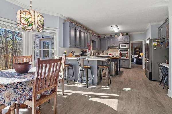 Your chance to join the highly sought after community of Kingswood Forest is here! Set on over three private acres, 138 Dumbarton Drive offers more than 3,000 square feet of well-maintained living space with a layout designed for flexibility, comfort, and long-term enjoyment. With five bedrooms, three full bathrooms, and two half bathrooms, this home provides the room you need to enjoy life now and the flexibility to fit the life you build in the future The main level features multiple living spaces, newly installed LVP flooring, and thoughtful updates throughout. A private room on the main floor offers the option of a bedroom or additional flex space, while the upstairs oversized primary suite with his and her closets creates a true retreat. Additional bedrooms and a secondary en suite allow for guest accommodations, home offices, or multigenerational living. A large finished bonus room in the walk-out basement with exterior access adds exceptional versatility for recreation, work, or fitness. The four-seasons porch and adjoining patio extend the living space outdoors, offering a peaceful setting to enjoy the wooded surroundings year-round. At the end of the driveway, there is space to park an RV or camper, along with a detached carport and storage building/workshop for vehicles, equipment, or hobbies. Set on a spacious, wooded lot with designated cleared areas and mature landscaping, this property delivers privacy, functionality, and the sense of ownership that you don't want to miss out on.