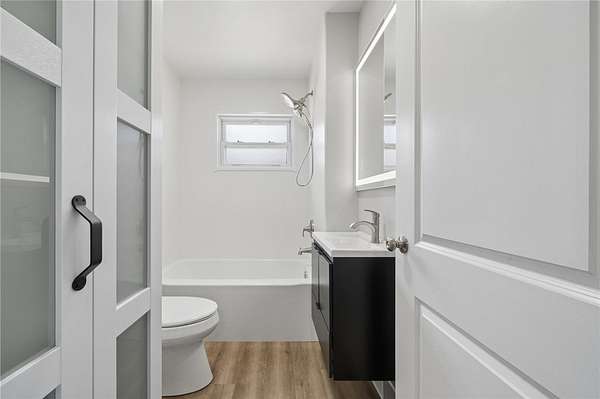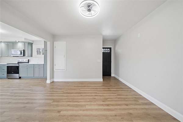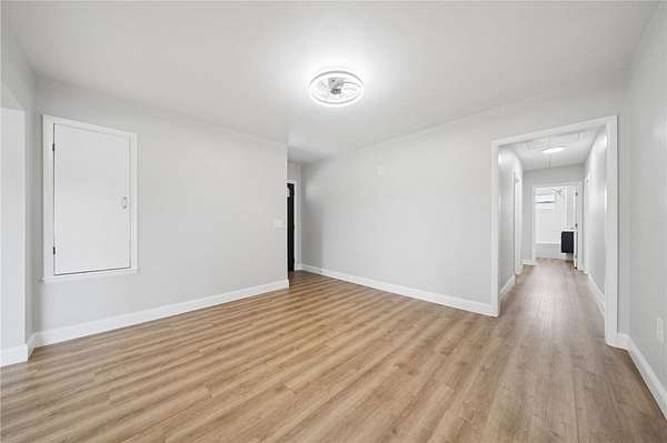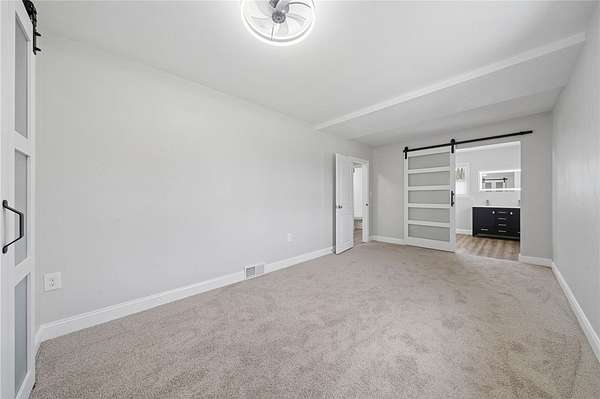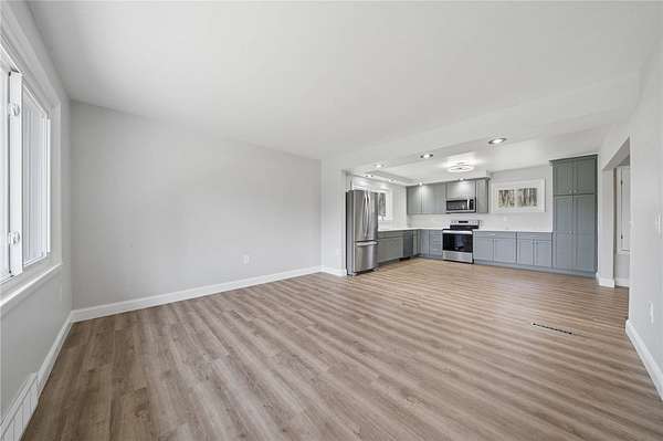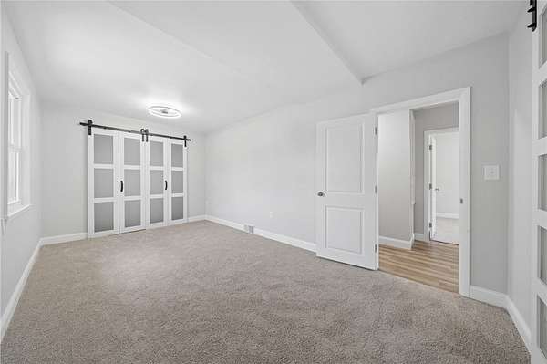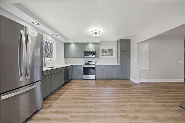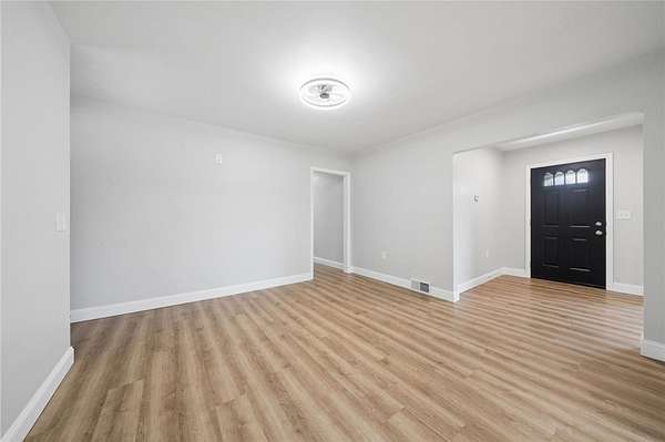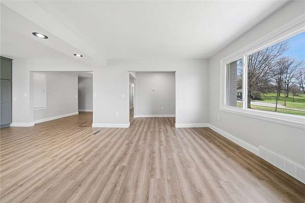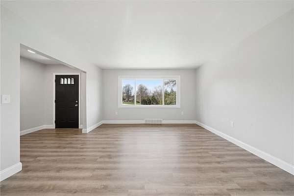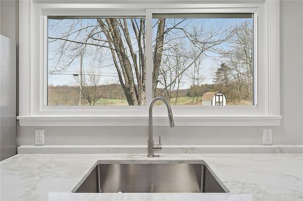 Fully renovated from top to bottom, this stunning brick ranch sits on a level 1.83-acre lot and blends modern style with everyday functionality. The exterior features a fresh gray brick finish with bold black accents, creating a stylish curb appeal that's sure to make your friends and family envious. Step inside to a bright, open floor plan filled with natural light, enhanced by LED recessed lighting, updated flooring, and clean, contemporary finishes throughout. The beautifully designed kitchen offers quartz countertops, stainless steel appliances, and custom cabinetry with a built-in pantry, perfect for both daily living and entertaining. The spacious primary suite is accented by a 6-pane frosted-glass closet door, and includes a private full bath with a stylish walk-in shower with a rain head and hand-held shower feature. Additional bedrooms are generously sized and ready to accommodate. Both bathrooms have been thoughtfully updated with modern fixtures and finishes. The full, open basement provides endless potential for future living space, ideal for a game room, home gym, or additional entertaining area. Enjoy the privacy and usability of the expansive, mostly level yard, perfect for outdoor activities, gatherings, or simply relaxing in a peaceful setting. Move-in ready with nothing left to do, this is one you won’t want to miss!