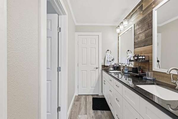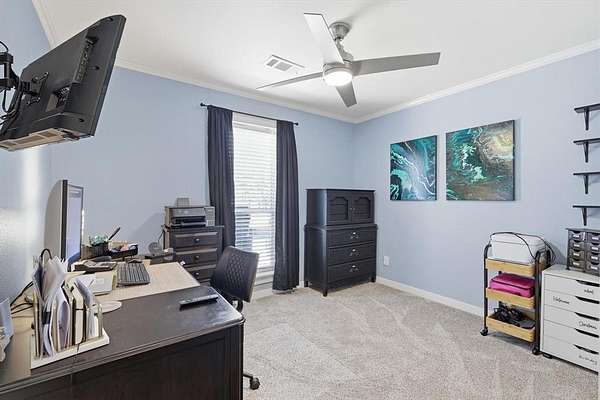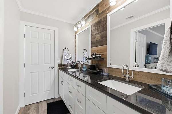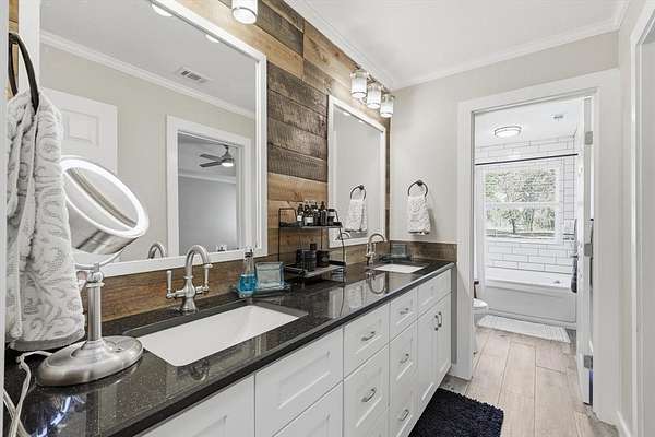 The primary suite is a peaceful retreat with a private bath and double sinks. Two additional bedrooms and a second full bath for family, guests, or a home office.