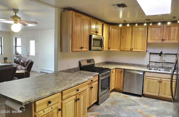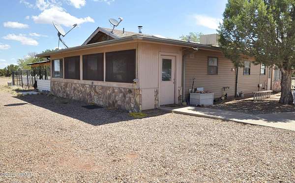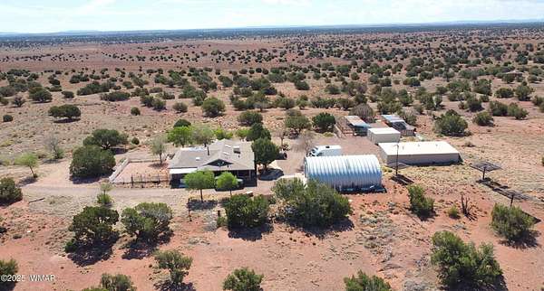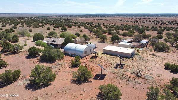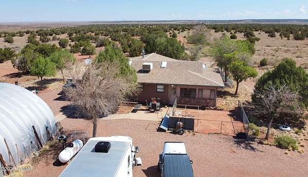 2092 sq ft, 2BD/2BA (potential 3rd BD), off grid, site built home on 40 fenced acres. Beautiful views from this property, fully set up to live self sufficiently, sustainably. 30 x 40 Quonset on cement (w/power, water, propane, W/D hookup) & additional 20 x 20 storage, horse stalls, & chainlink fenced yard for the dogs. Private well into the Coconino Aquifer (reg # 55-544157). See well info under documents. New well pump, pressure tank & dish washer in 2025, as well as new (2020 & newer) slate tile, complete kitchen remodel, 11KW propane generator, roof, on demand water heater, washer/dryer, & lithium batteries for the 48 volt solar system. Approx 21 mi to Snowflake, 38 mi to Show Low, 1.2 mi to maintained rd, & 6 mi to pavement. Many frost free water spigots, graveled driveway/parking.... RV hookup, & rock hounds delight (including petrified wood). Some furniture conveys (living room). Additional Quonset kit (20 x 40) available (negotiable). Property will easily appraise at this price. Additional features list under documents tab