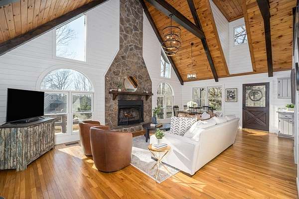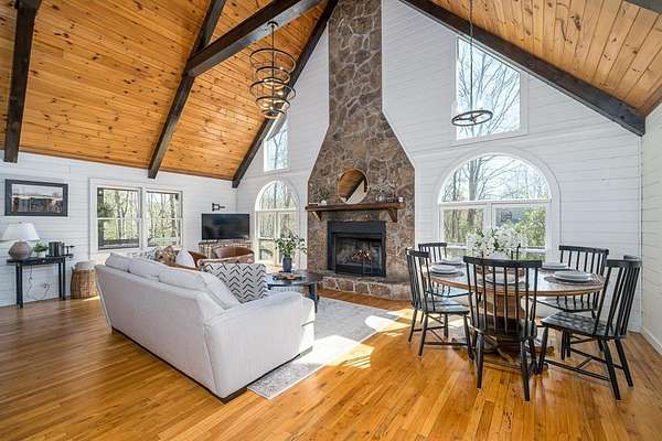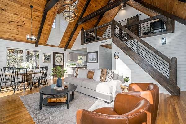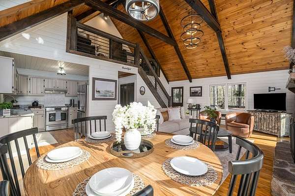 *MOTIVATED SELLER!* *PRICED BELOW MARKET VALUE* *SHORT-TERM RENTAL FRIENDLY* This is a premier short-term rental investment or private mountain escape! Nestled on two rare, flat acres in the heart of North Georgia, this fully furnished three-bedroom, two-bathroom cabin is designed for both guest appeal and investor success. Ideally located just minutes from Lake Blue Ridge and downtown Blue Ridge, this property offers the perfect balance of seclusion and convenience. As you drive up, there is an easy-in, easy-out circular driveway. Stepping inside, you'll find floor-to-ceiling windows that flood the open-concept living space with natural light. A wood-burning fireplace serves as the focal point, creating a warm and inviting atmosphere for guests to gather. The modern lighting, tasteful furnishings, and well-appointed kitchen ensure a comfortable and seamless guest experience. Investors, the thoughtfully designed layout comfortably accommodates up to eight guests, with two bedrooms on the main level with full beds. Upstairs, the private loft suite with queen bed features its own bathroom, workspace, and additional seating area, providing a retreat-like experience. There is a large wraparound deck with a hot tub, and the fire pit with Adirondack chairs invites guests to relax under the stars. The expansive, flat acreage provides space for families to enjoy outdoor activities worry-free, a rare find in this mountainous region. There is even enough space to create your own pickleball court! Outdoor amenities are a major draw for visitors. This home is within walking distance of the community pond. Located on paved roads with easy access to hiking trails, wineries, shopping, and dining, this property is primed for a successful rental investment. Whether you're looking to capitalize on the thriving short-term rental market or seeking your own turnkey vacation retreat, this Bougie Cabin is ready to welcome you. (Pickleball Court Is Virtually Staged.)