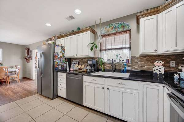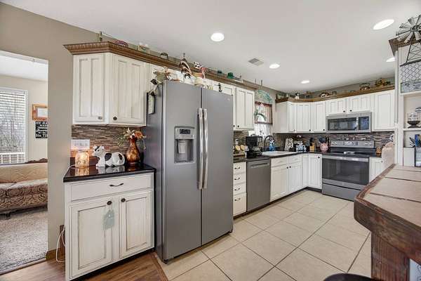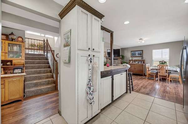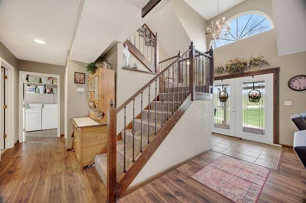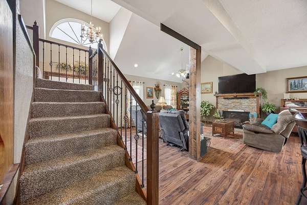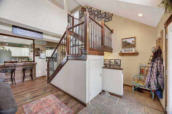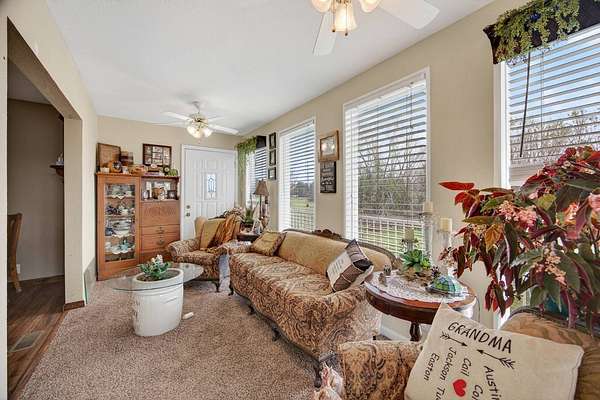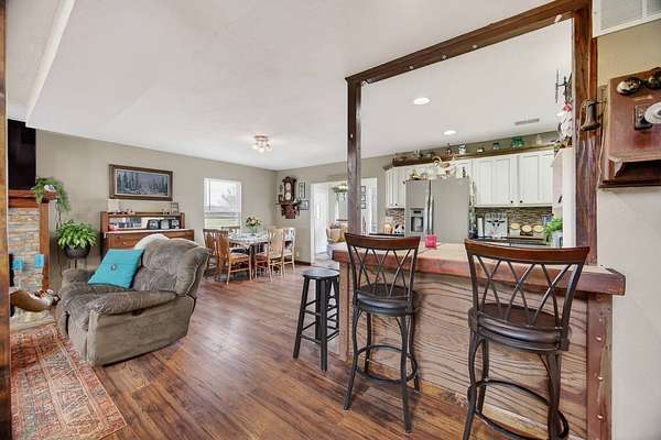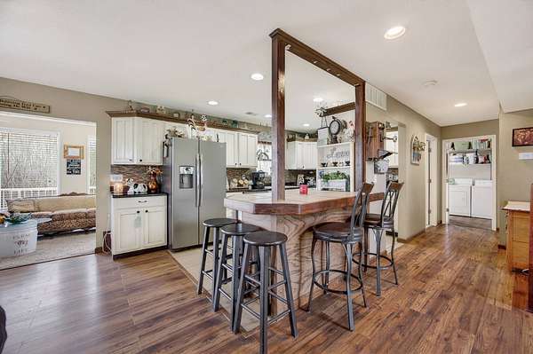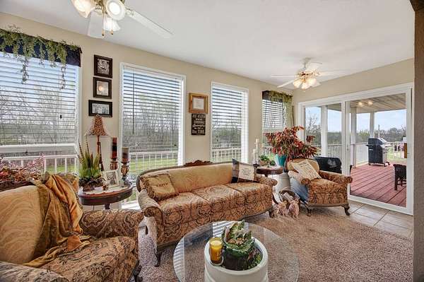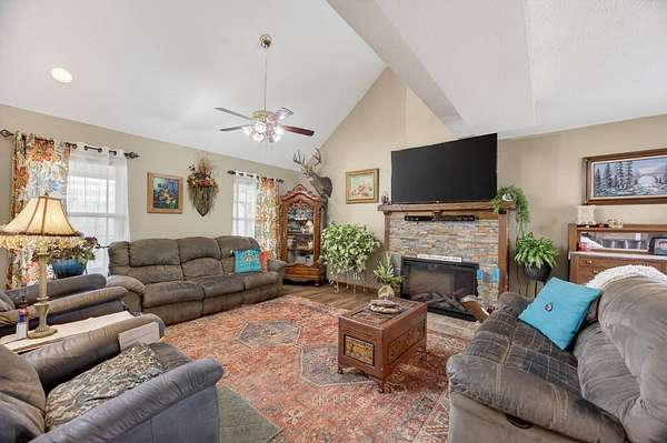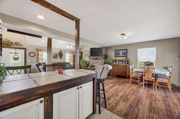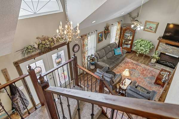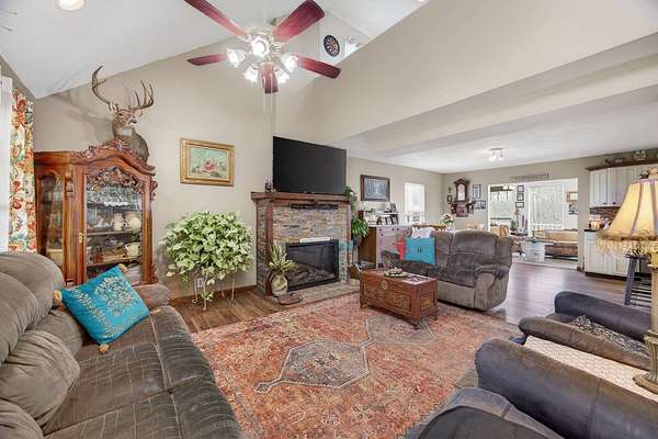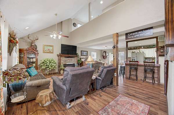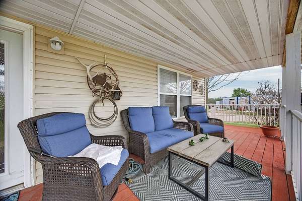 Don't miss this charming farmhouse situated on approximately 5 acres just minutes from Camdenton High School! This spacious 4-bedroom, 3-bath home offers the perfect blend of peaceful country living with convenient access to town and a short drive to Lake of the Ozarks. From the moment you arrive, you'll be drawn to the inviting wraparound porch-ideal for enjoying mild days and scenic views. Inside, the main level features an open-concept design with a soaring ceiling and overlook from the upper level, creating a bright and airy feel throughout. The kitchen includes a bar area that flows seamlessly into the living room, perfect for entertaining. Just off the kitchen, you'll find a cozy sunroom-an ideal spot to relax with your morning coffee. The main level includes one bedroom and one full bath. Upstairs, the private primary suite offers its own bathroom and beautiful views of the surrounding property. The walkout basement provides additional living space with two bedrooms, a full bath, and a partial kitchen-perfect for guests, extended family, or potential in-law quarters. This home has seen several updates in recent years, including a newer metal roof. The property also features multiple outbuildings, providing ample space for storage, hobbies, or equipment. Additional highlights include a septic system and central HVAC. If you're looking for space, functionality, and a great location near town and the lake, this property is a must-see. Schedule your showing today!