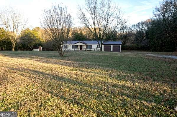 Welcome to peaceful country living on 1.89 acres with a well-maintained double-wide. This wellkept 2-bedroom, 2-full-bath home, built in 1988, offers a functional singlelevel layout with a comfortable living room and a separate den with a cozy fireplace for added warmth. The eatin kitchen provides ample cabinet storage and easy access to the main living areas, while the split bedroom design ensures privacy for both the primary suite and secondary bedroom. The primary suite includes its own full bath, and the home's interior layout supports everyday convenience and lowmaintenance living. Also features a full laundry room leading onto a small back deck. Outside, the lot offers a blend of open yard and natural privacy-ideal for gardening, pets, small livestock, or future outdoor improvements. The back deck area offers a screened back porch, and there is a storage building included for practical utility. Front Porch features a wheelchair ramp for accessibility. The property's terrain provides flexibility for additional structures or recreational use. Also features a 2-car attached garage with workshop space. Roof has been upgraded to metal over the years. Located on a quiet road with a rural feel, this home offers quick access to Royston, Hartwell, Lavonia, and Hwy 29, within 15 mins of Lake Hartwell and I-85, making it a great fit for buyers seeking affordability, space, and a peaceful setting without sacrificing convenience. This property is perfect for anyone looking for a manageable homestead, an investment opportunity, or a fulltime residence with room to grow. Property is sold AS IS. Call agent for more details.