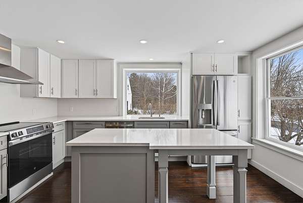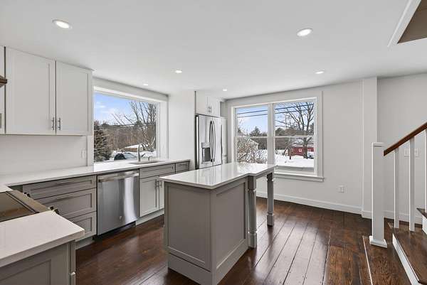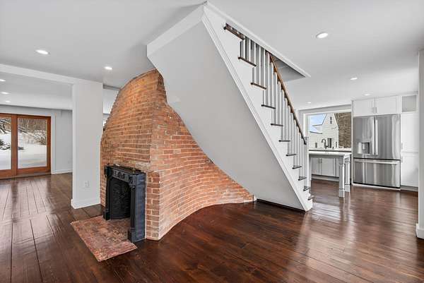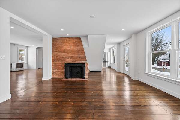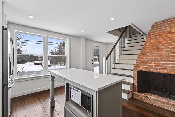 Steeped in New England history yet thoughtfully rebuilt for modern living, this circa 1832 farmhouse has been extensively renovated from the studs up and sits on 2.18 private acres in a quiet Cumberland setting just minutes from town. Offering 1,927 square feet of living space, the home features three bedrooms and two beautifully updated baths, blending timeless farmhouse charm with the comfort and efficiency of a nearly new home. The comprehensive renovation touched nearly every aspect of the property. Major improvements include a completely rebuilt gourmet kitchen with large windows and an eat-in island, all new plumbing and electrical systems, new appliances, and energy-efficient insulation throughout the home. Heating and cooling are provided by a new Mitsubishi heat pump system, complemented by updated lighting, new sheetrock walls and ceilings, and refinished flooring that preserves the character of the original home. Historic elements have been carefully restored while opening the layout for modern living, including exposing and repointing the central chimney and fireplaces. Structural upgrades, new windows, new siding, and significant barn improvements add to the home's durability and appeal. Outside, the property features new decks, a refreshed driveway and walkways, updated landscaping, and a modern garage door on the barn. Set on over two acres of peaceful land with room to garden, relax, or explore, this property offers the rare opportunity to own a historic Cumberland farmhouse that has been thoroughly modernized with quality craftsmanship and attention to detail.