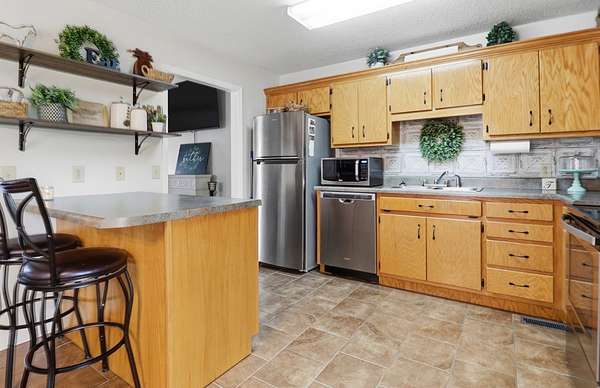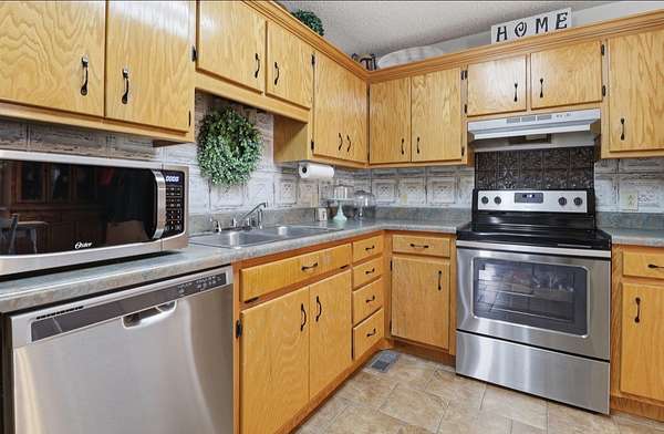 - Dishwasher, Dryer, Electric Range, Microwave, Refrigerator, Washer