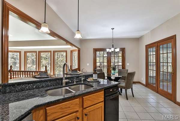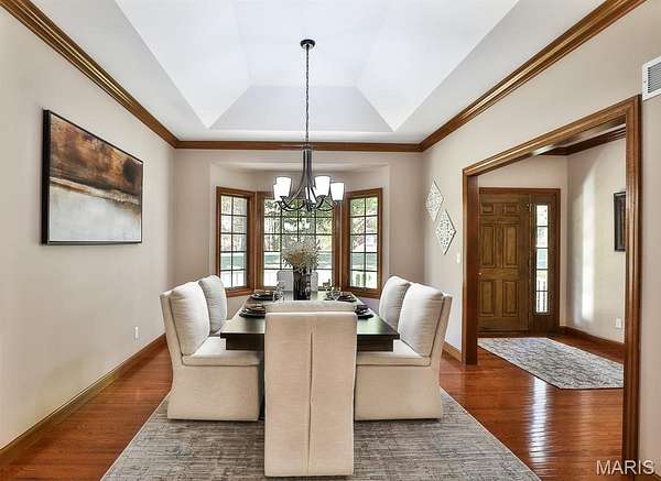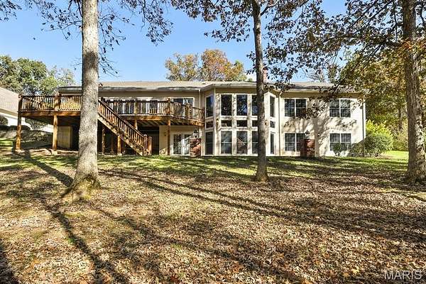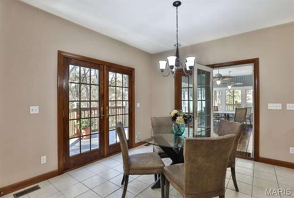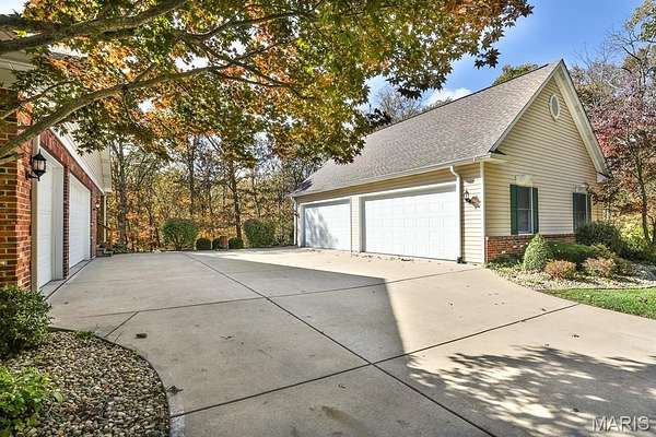 Meticulously Maintained Atrium Ranch Nestled in a Picturesque setting on 3 acres in Wentzville Schools! Formal dining features tray ceiling, 3-bay window, and crown molding. Vaulted great room boasts gas fireplace w/decorative wood mantle. Lovely den- perfect for watching tv or office space. Breakkfst area offers 2 sets of French doors! 1 leads to a stunning 3 season room & 1 opens to an expansive deck overlooking the backyard & wooded area beyond. 42" cabinets adorn the large kitchen w/pantry, Double ovens & Trash Compactor! MF laundry w/utility sink + space for extra freezers/mudroom setup! Vaulted Master Ste w/luxury bath boasts dbl sinks & corner soaking tub. 2 addl bdrms, full hall bath & powder rm complete the main floor. Finished walkout LL has expansive rec/family area w/fireplace, kitchenette w/brkfst bar, 4th bdrm, & office (5th bdrm) w/doors to patio. Attached 3-car garage w/stair access to LL workshop! PLUS Extra Detached 4-Car garage- a Car Lover's Dream!! Enjoy the convenience of an in-ground irrigation system.