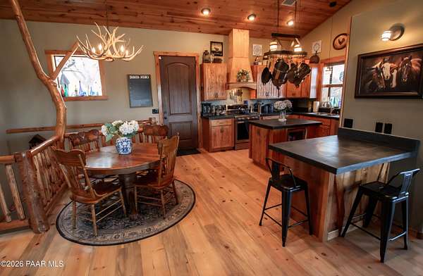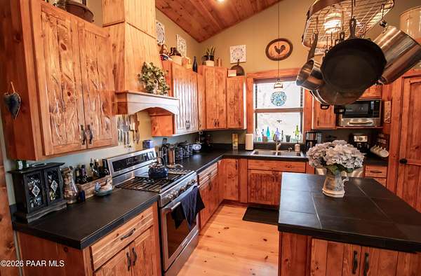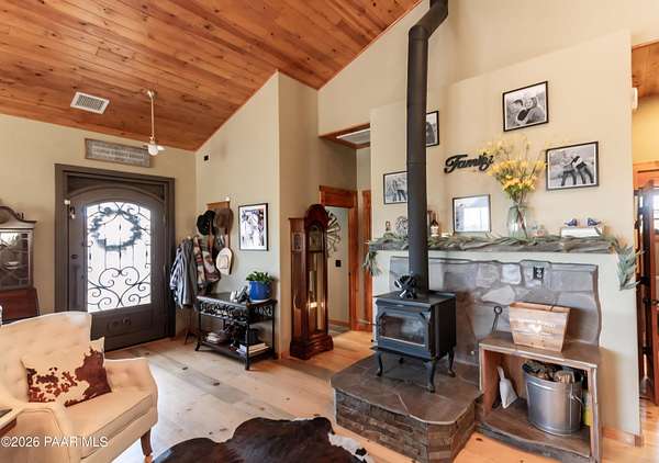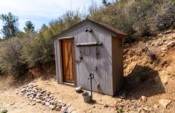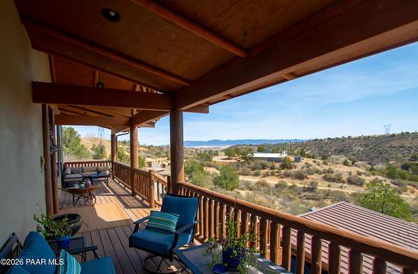 You found it! A Hidden Gem and Horse property on a secluded hillside. Perfectly located between Prescott Valley and Prescott. Only 7 miles from Historic Downtown Prescott and Whiskey Row. No more than 20 minutes from all the conveniences of a city, but with the serene quiet and beautiful starry nights of the country.Blue Oak wood floors throughout the home's entirety, with beautiful tongue and groove ceilings on the main floor and custom woodwork touches throughout. A cozy wood burning stove for those cold nights and a Grand porch to watch the endless skies with a cup of coffee or a glass of wine. Take a walk down a lighted path, then down a wooden staircase from the horse level to the bottom level of your property where a future shop or whatever you need awaits you. Bring your horses! The 2 horse stall and oversized turnout, complete with a feed shed and tack room are under 3 years old.Make this 3.14 acre property your own with plenty of room to put a workshop or a guest CasitaMust see, too many other features on the property to list.