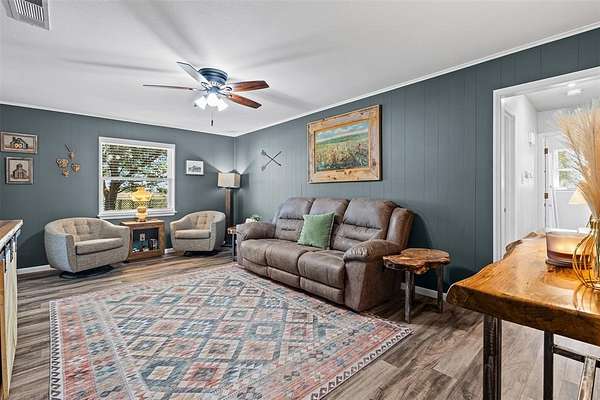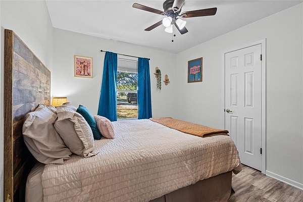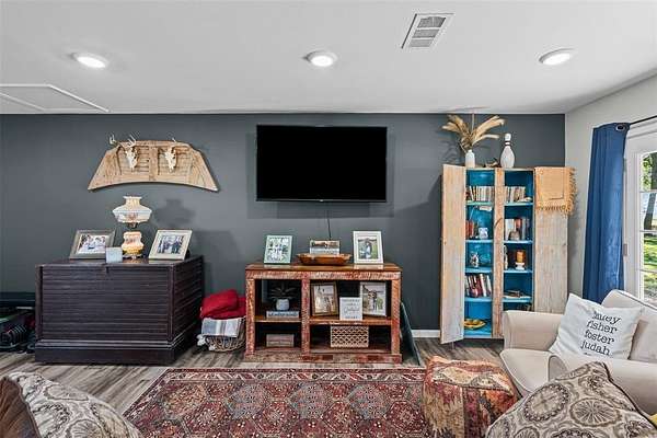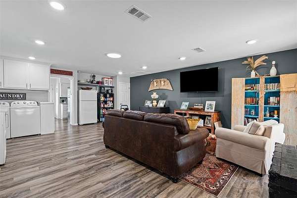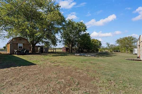 Enjoy the peace and privacy of a fully fenced, 5+- acres just outside city limits! This property offers a 3 bedroom, 2 bath home, several storage sheds, a chicken coop, a fire pit, and a ready-to-go RV hookup, septic and private well water. Whether you're looking to start a small homestead or simply enjoy wide-open country views, this property delivers the best of both worlds; rural living with easy access to all the conveniences of Justin, just 10 minutes away.