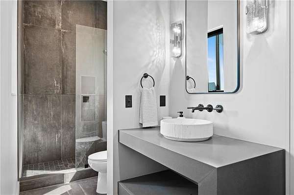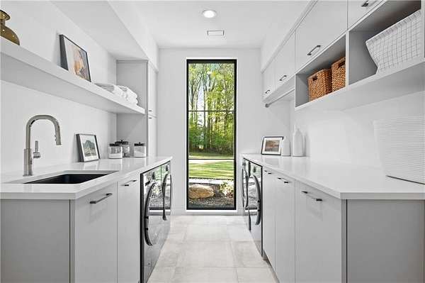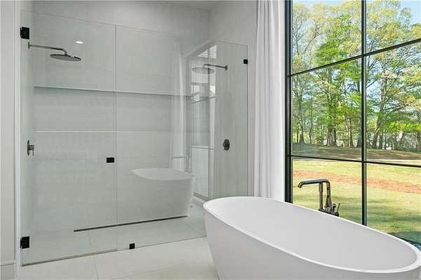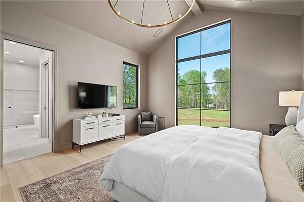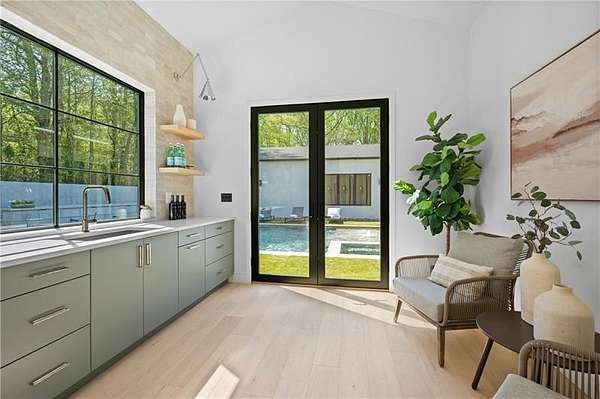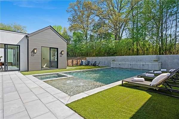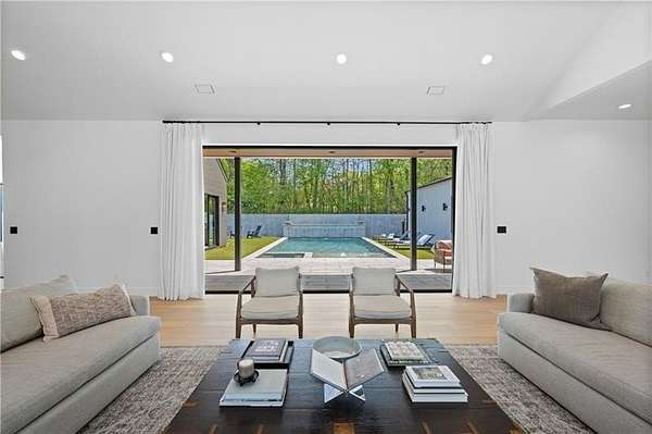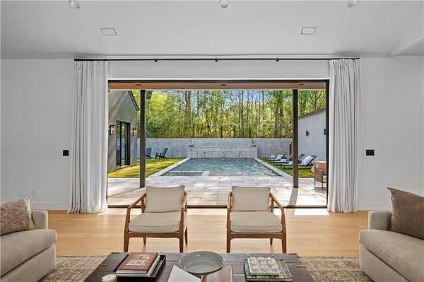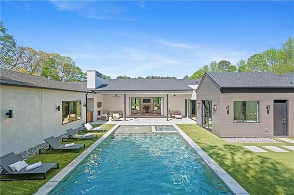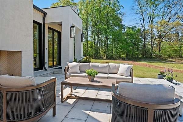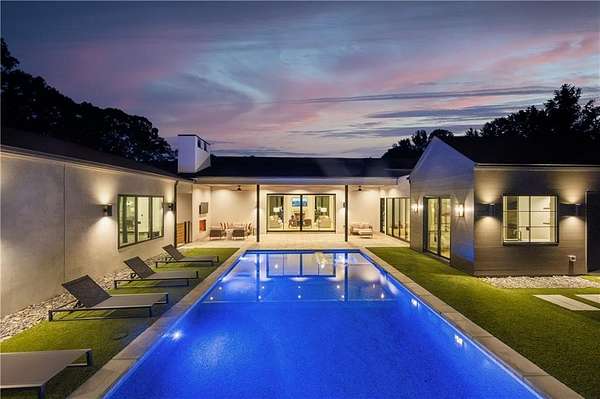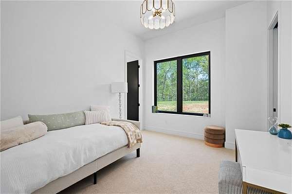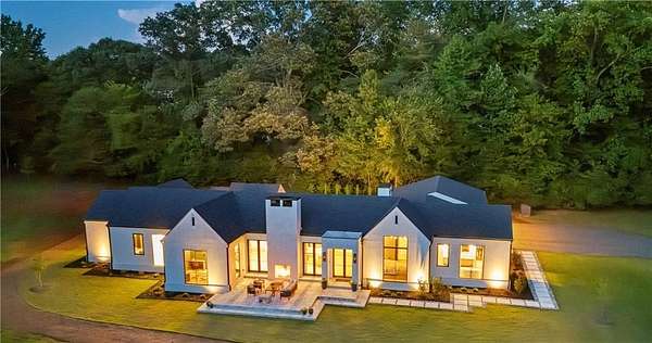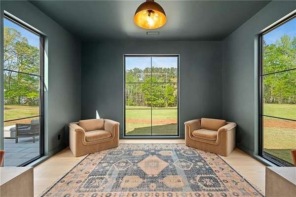 California Dreaming on nearly 8 private acres in Milton. This exquisite, one-level-living home is newly built and is fabulously suited to a relaxed lifestyle. Ideally located about 3 miles from Downtown Alpharetta. Enormous front yard is surrounded by trees. Relaxing front patio with fireplace and sitting area. Breathtaking entry into home allows you to view the vaulted open Great Room, Kitchen, outdoor covered patios and private pool. Large Great Room is loaded with sunlight and opens out to the front patio as well as having a slider door that opens out to the back patio and pool. Beautiful Kitchen with top-of-the-line appliances, custom cabinetry, built-in coffee area, breakfast bar, and back pantry area with lots of storage and shelving. Fabulous Dining Area opens out to a private courtyard on one side and covered patio and pool on the other side. The private courtyard can accommodate a spiral staircase up to a flat rooftop area. Office overlooks large front yard. Luxurious Owners Suite overlooks private yard and includes a beautiful owners bathroom with spa shower, soaking tub, double vanities and spacious walk-in closet with built-ins. Three additional bedroom suites all have private bathrooms and large closets with lots of storage. 5th possible Bedroom potential if pool house is used as a separate suite with its own bathroom and closet space. Exercise Room overlooks pool. Breezeway opens to mud room with custom built-ins and fabulous laundry room. Superb outdoor setting features a covered patio with fireplace, saltwater pool with spa and water feature, and pool house with beverage area, relaxation space, storage closet, and full bathroom with shower. Beautifully appointed home with gorgeous fixtures, beautiful flooring, serene tones, clean lines, and relaxing ambience both indoors and out. Three car garage and space to expand to many more. Extremely private acreage. Absolutely stunning house and grounds.