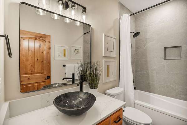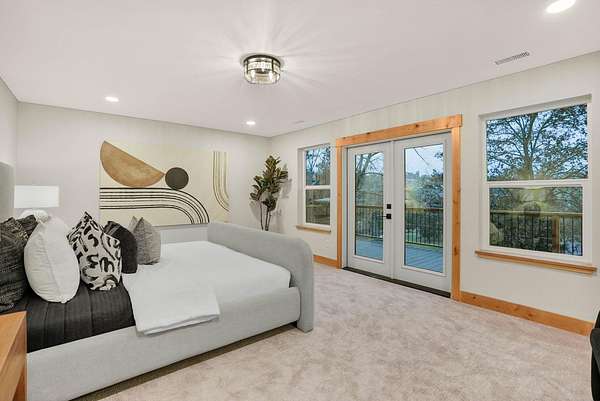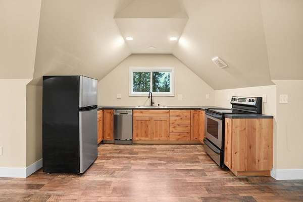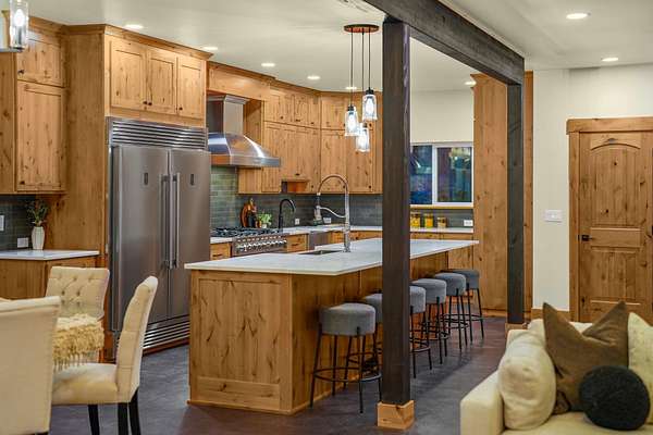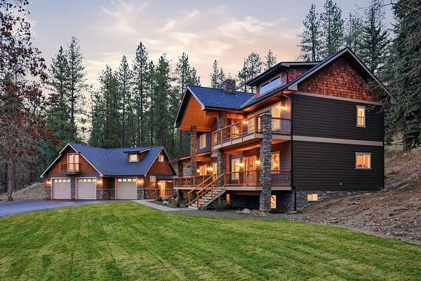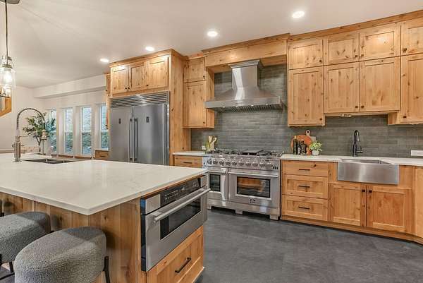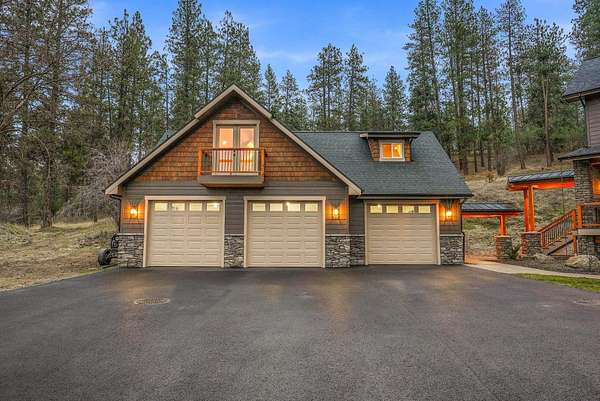 Privately tucked into a serene hillside setting on 2.9 acres, this exquisite new construction 5 bed, 5 bath home plus a 1 bed, 1 bath ADU showcases luxury finishes and custom craftsmanship throughout. The main floor boasts open-concept living with a stunning custom stone fireplace and a chef's kitchen featuring custom knotty alder cabinetry and premium Forno appliances, including a 60" dual fridge, 48" 8-burner gas range with dual convection and rotisserie, microwave, 2 dishwashers, and 2 sinks. The main level also includes a bedroom, office, full bath, and laundry room. Upstairs, the primary suite offers a private balcony and spa-inspired bath, plus 2 additional bedrooms and a full bath. The lower level provides a private suite with living room, informal dining, kitchenette with bar, ensuite bath with 72" tub, plus guest bath. Step outside to find a 3-bay garage with ADU above, offering generous off-street parking and RV space. Other features; 400-amp service, multiple HVAC systems mini split, and more.