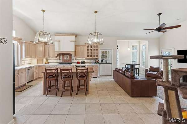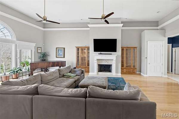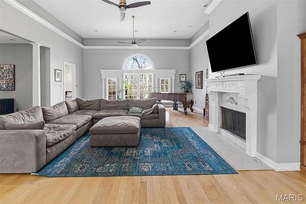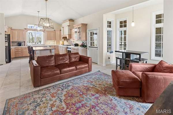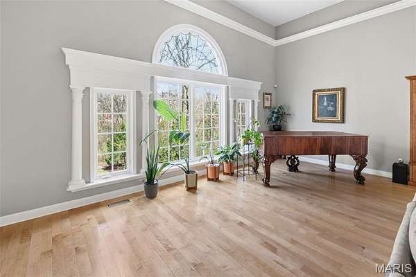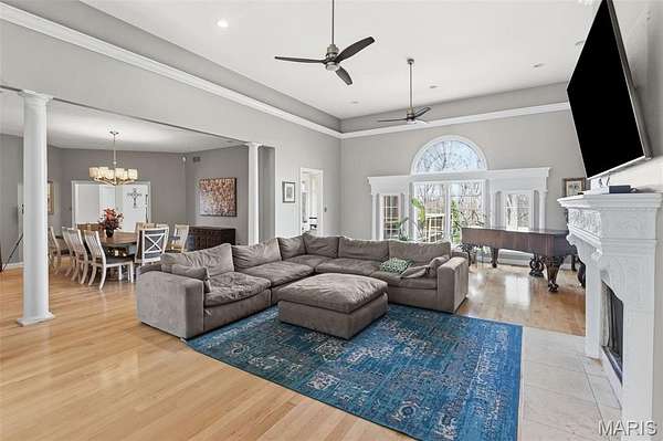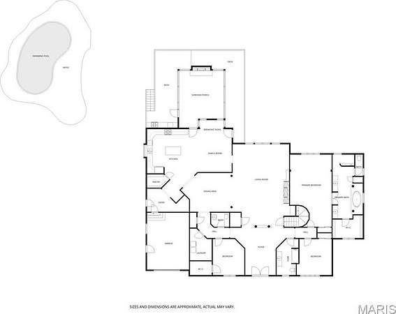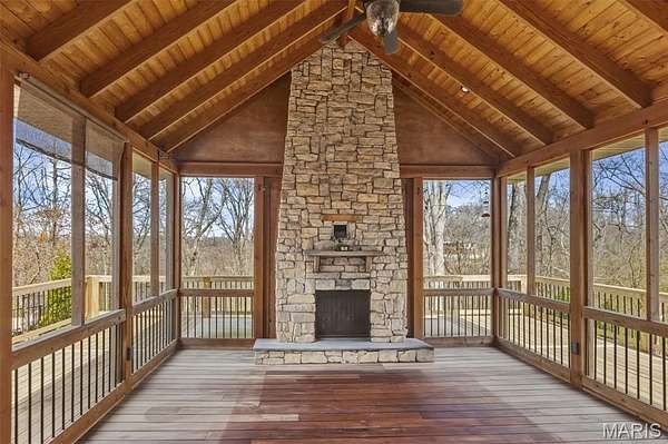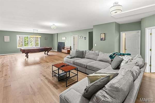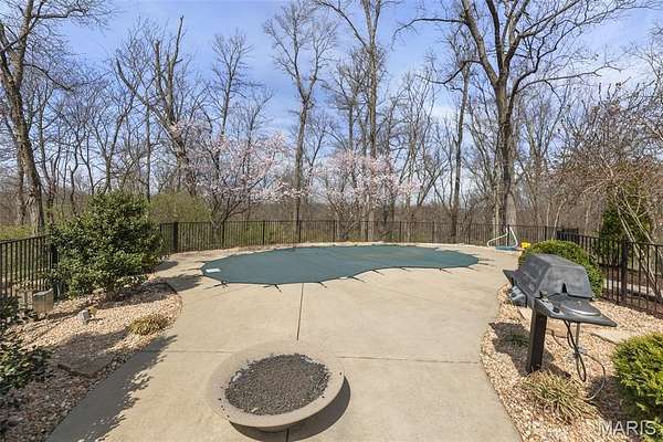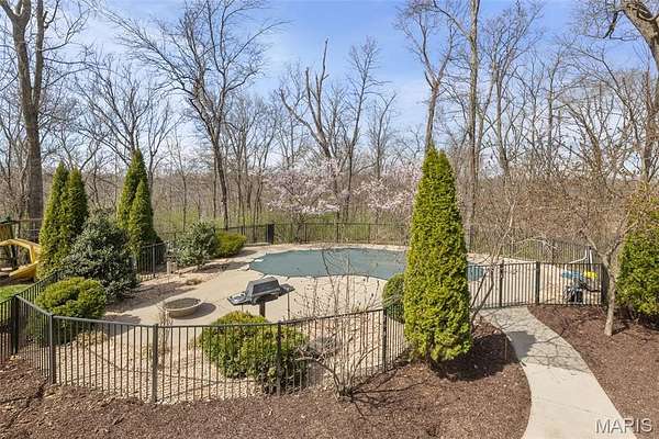 Welcome Home to the Chateau in the Woods. This exquisite home has the hard to find acreage at the end of a private cul-de-sac. This estate brings you all the amenities you’ve dreamed of. Check out the interactive video tour. This 7400+sq. ft. ranch provides 6 bedrooms, 4 baths, 3 car garage, in-ground pool and so much more. The front elevation invites you towards the bricked front porch and impressive front entrance. The spacious formal foyer warmly greets you as you move towards the great room with 15 ft ceilings. The great room provides the warmth of a fireplace and a wall of Palladian style windows with a wonderland view of the woods. The two display cabinets on either side of the fireplace are to remain with the house. The kitchen has maple Amish cabinetry with hard surfaces and a tiled center island. The pillared formal dining room is open as well. The walk out lower level has 3 bedrooms, a full bathroom, recreation room, wet bar, sauna and exercise room, home theater, family area, office, storage, and doors that open to a treed, private back yard. The pool table will remain with house. Sit back and relax by the saltwater pool, or in the high ceiling, screened deck which includes a spectacular stone fireplace and an adjacent outdoor kitchen. You'll love the gracious spiral staircase as it leads to the lower level. The Gunite pool is salt water and heated which makes the swim season last a bit longer. Make sure to print out the floor plans to help you with room configuration.