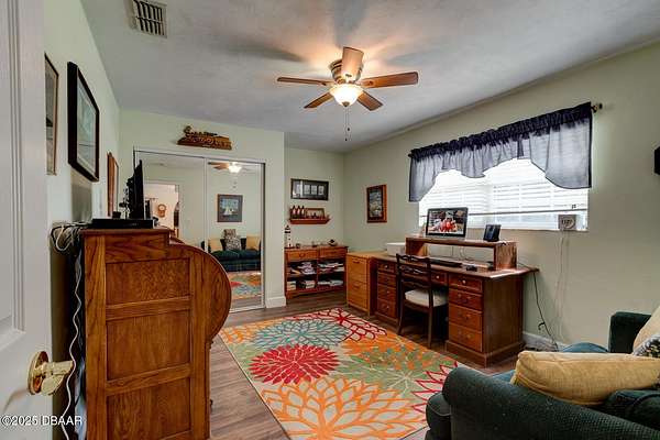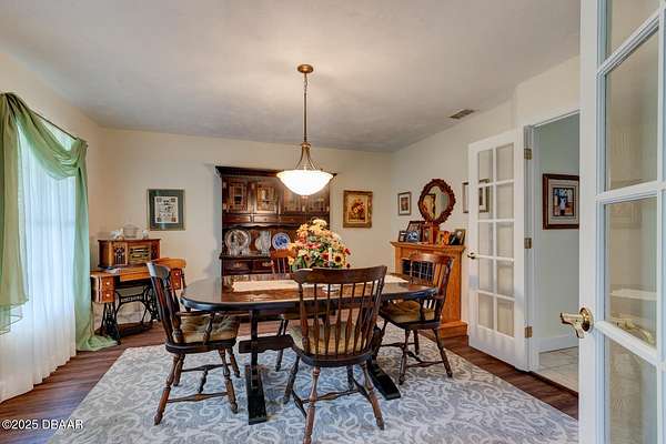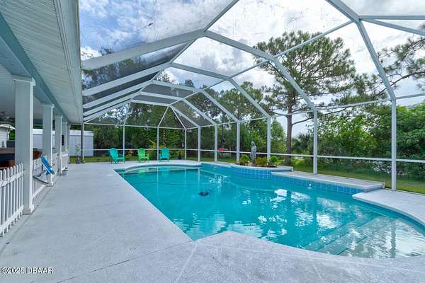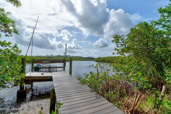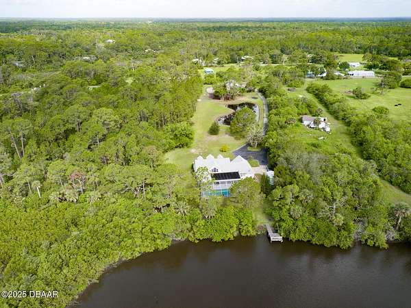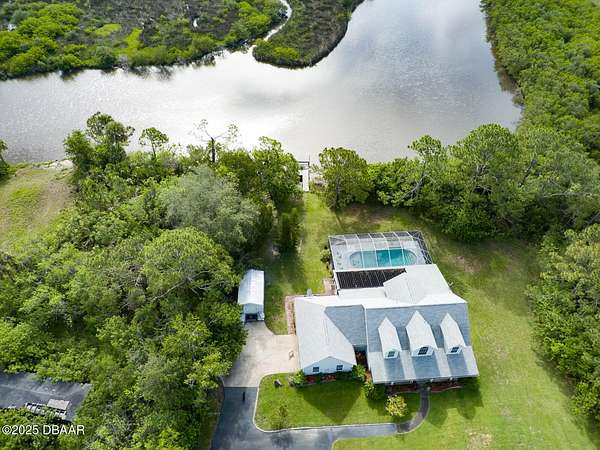 Welcome to your dream home-a beautifully renovated and charming 4-bedroom, 2.5-bath residence perfectly nestled on private, waterfront acreage along the serene Turnbull Creek. This rare gem offers the best of both worlds: the tranquility of nature with the convenience of being just minutes from the city. Wake up to breathtaking sunrises over the water from your own private dock, or cast a line and enjoy some peaceful fishing right in your backyard. The heated, screened-in inground pool is ideal for year-round enjoyment-whether you're hosting unforgettable gatherings or unwinding after a long day. Inside, the home features tasteful updates throughout, blending modern comforts with timeless charm. Outside, a spacious workshop provides room for hobbies, storage, or your next creative project. Whether you're entertaining guests or enjoying quiet evenings with loved ones, this property offers the ultimate relaxation, recreation, and privacy-all within easy reach of town.