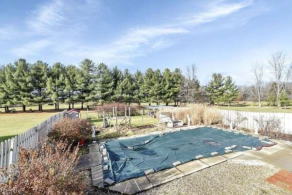 This exceptional four-bedroom, three-full-bath split-level home in Oberlin is nestled on a sprawling 3.4-acre lot, offering a perfect blend of comfort, style, and outdoor living. The property boasts a sparkling saltwater inground pool, ideal for relaxation and entertaining, complemented by a spacious trex deck and back patio that create an inviting outdoor oasis. Recent updates include a newer roof and solar panels, designed to significantly reduce utility costs, enhancing both efficiency and sustainability. The large pole barn provides ample storage and versatile space for hobbies, equipment, or potential expansion. Inside, the home features a spacious family room centered around an Eat-in kitchen equipped with newer cabinets, generous counter space, and excellent lighting, making it a chef's dream. The upper-level hosts three sizable bedrooms, including a master suite with a private full bath, while the lower level offers a cozy wood-burning stove, newer vinyl plank flooring, and a fourth bedroom. This lower area is perfect for entertaining or creating a comfortable retreat. Surrounded by peaceful natural beauty, this property is an outdoor lover's dream, offering endless opportunities for gatherings, recreation, and serene living in a tranquil setting