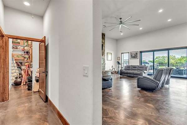 Unbelievable you can earn money on this five-acre ranch, while you enjoy lower taxes because of your AG Exemption. As you enter the ranch you will see the very large barn dominium home and large barn. A wonderful place to call home. Entering from side porch you come into the open floor plan with living area, kitchen and dining area. Livingroom with 14' Stone Bonanza style floor to ceiling fireplace with complete full hearth. Kitchen has abundance of cabinets. Kitchen sink is right below a window with a nice view. Counter tops are leathered granite, very large peninsula with many drawers and a hidden cabinet for the trash. Many cabinets and drawers for pantry by the Dining area. The S.S. fridge in kitchen can stay. End of hall has a large closet for more storage. Laundry room has water and a drain area for dog bathing place, where ice maker is now. (It will be removed.) Sink in the laundry room with an area to fold and hang items. There are three good sized bedrooms, and full bathroom. There is a dry bar next to the media room. Primary bedroom has electric fireplace. Next is the great walk-in closet, it is amazing. Primary bath is so wonderful with double sinks and double vanities. A very large double shower and jetted tub is set so you can enjoy the TV and fireplace. Ranch is AG Exempt, keeping taxes lower. Barn and pens are covered with fans for each pen. Large tack room, barn has electricity and water at the barn. Hot water heater too. Lights so you can work at the barn any time. The listing agent is related to the seller.