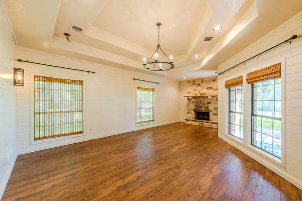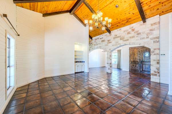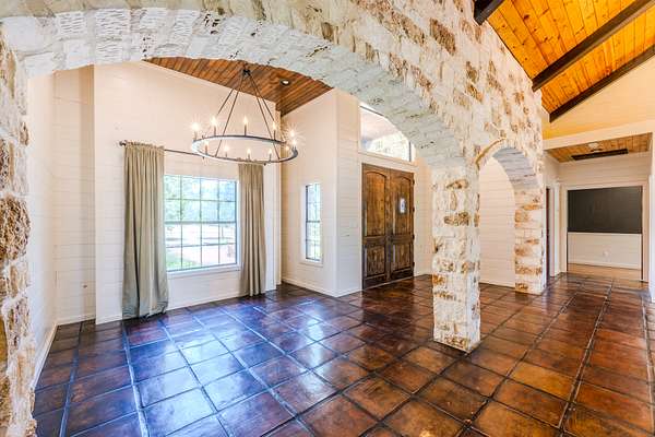 Enter through a gated entrance off paved Texas Highway 127 to discover a custom-built home, constructed in 2008, offering 4,924 sq. ft. of living space per UCAD. Designed for both comfort and entertaining, this spacious residence features 5 bedrooms, 4.5 bathrooms, 3 fireplaces, a light-filled open-concept kitchen and living area, a formal dining room, a home gym/office, and an expansive upstairs party room. The primary bedroom is a luxurious retreat, with two spacious cedar-style walk-in closets, a cozy stone fireplace, and direct access to the covered patio. The en-suite bathroom offers dual sinks, a soaking tub, and a walk-in shower for a spa-like experience. All appliances in the kitchen are to stay including a gas stove with oven, refrigerator, dishwasher and ice maker. Outdoor enthusiasts will love the expansive covered patio perfect for outdoor living, along with a stunning fenced-in pool featuring a hot tub and waterfall. There is a 2-car attached garage, which includes 2 large storage closets for added convenience. Craftsmanship is evident throughout the home, from elegant wood floors and Saltillo tile to stone fireplaces that create a warm, inviting ambiance. The backyard is cedar-fenced and includes a separate fenced dog run--perfect for pet lovers.