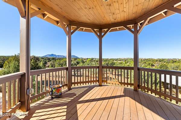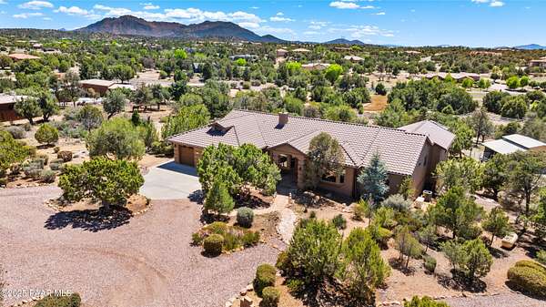 Welcome to 13832 N Spotted Eagle Drive - a beautiful 4+-bedroom, 4-bathroom home located in the desirable Inscription Canyon Ranch with no HOA! This property offers the perfect blend of versatility, space, & breathtaking natural beauty--whether you're looking for a private retreat, equestrian setup, or entertainer's paradise. Enjoy unobstructed views of Granite Mountain from the expansive back deck or the elevated gazebo. Inside, the home features a formal living room with a fireplace, a spacious family room, an office, & a versatile flex room or second living area, also with its own fireplace. The kitchen is equipped with newer appliances & opens to an adjacent dining room that offers panoramic views & access to the covered decks. Spacious primary suite with access to expansive deck with breathtaking . The 2nd and 3rd bedroom have their own adjacent full bathrooms. The office and flex room can easily be bedrooms 4 and 5. An elevator provides access to the lower-level. Outside, you'll find a private swimming pool, a horse-ready barn, and plenty of space to roam all set on a beautifully maintained and thoughtfully designed property.With no HOA, incredible versatility, and too many features to list, this one-of-a-kind home is a must-see. Schedule your private showing today!Extra Features:1. Backup Generac generator system2. Home humidifier system3. Hot water recirculation system.4. Home security system5. Home elevator access to walk-out downstairs6. New HVAC unit7. Epoxy floors in 3 car garage8. Central Vacuum System9. Intercom System10. Breezeway barn, individual stalls with self drinkers, tack room and fenced areas.12. 2 owned 500 gallon propane tanks (one underground)13. extra large water heater w/recirc