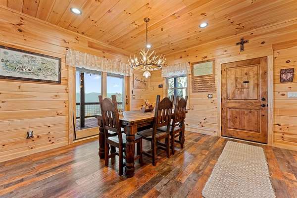 Nestled at 3,000 feet in Bryson City, NC, this rustic mountain retreat blends luxury with the Great Smoky Mountains' splendor. This 3-bedroom, 2.5-bath home comes fully furnished and offers tiered panoramic views that shift with the seasons, providing a serene escape for adventure seekers. Inside, rustic elegance shines in the gourmet kitchen with custom cabinets and granite countertops. The open living area extends to decks for outdoor dining in fresh mountain air. Retreat to the primary suite, a private oasis featuring an en-suite bathroom with a luxurious walk-in tile shower and Jacuzzi tub for relaxation. Two additional bedrooms provide ample space for family or guests, while the lower level features a bonus room and game room for entertainment. A mud room with dog washing station adds practicality. With its prime location near Nantahala National Forest, Fontana Lake, and the charming town of Bryson City, this property isn't just a home--it's a gateway to an elevated lifestyle of serenity, adventure, and sophistication. Schedule your private viewing today and make this mountain masterpiece yours.