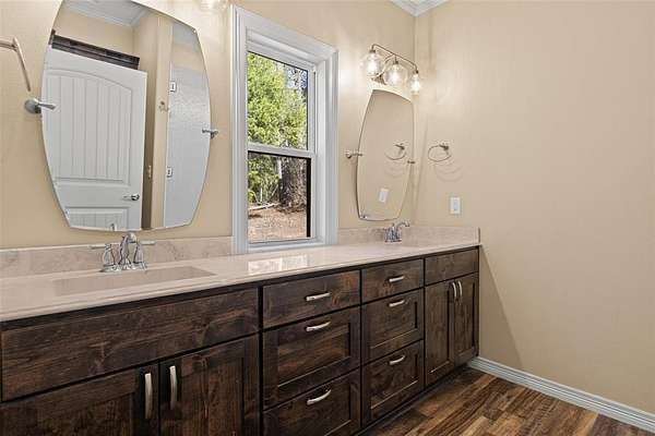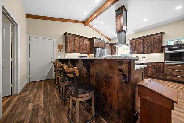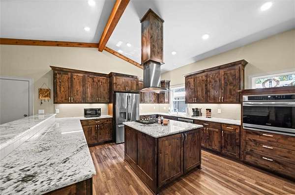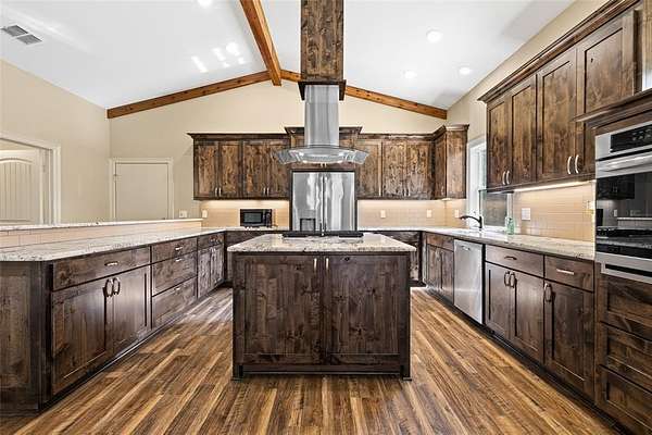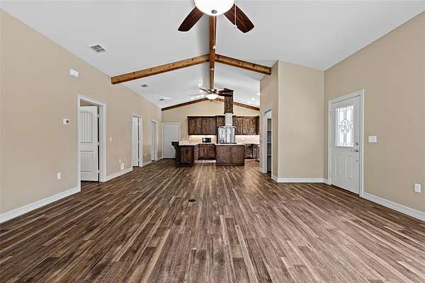 Back on the market after MH was removed. Situated on 3.74 ACRES !! Discover peaceful country living just outside Big Sandy with this unique custom built 2020 barndominium retreat, offering comfort, charm and versatility on a beautiful stretch of land surrounded by trees and rolling landscape. This open concept 2-BR 2_BA barndominium spans 1,960 sq ft under roof and boasts vaulted ceilings, durable vinyl plank flooring, and a thoughtfully designed custom kitchen with custom granite countertops, custom cabinets and deep drawers, an air fryer_convection oven, propane stovetop, built-in spice cabinets in the island, and plenty of custom cabinetry with drawers for smart, spacious storage. This kitchen is perfect for home chefs. There is plenty of hot water with the on-demand tankless water heater. The living area is a show stopper, featuring two large picture windows that frame sweeping views of the countryside, flooding the space with natural light. The spacious master suite includes a massive walk-in closet with washer and dryer hook-ups for convenient in-room laundering. Step outside to enjoy the expansive 400 sq ft wraparound patio--ideal for morning coffee, entertaining, or watching the sunset. Whether you're seeking space to relax, room to grow, or flexibility for work and hobbies, this property offers it all--with privacy, comfort, andplenty of country charm. Additionally there is a transfor switch for a generator OR Rv hookup.