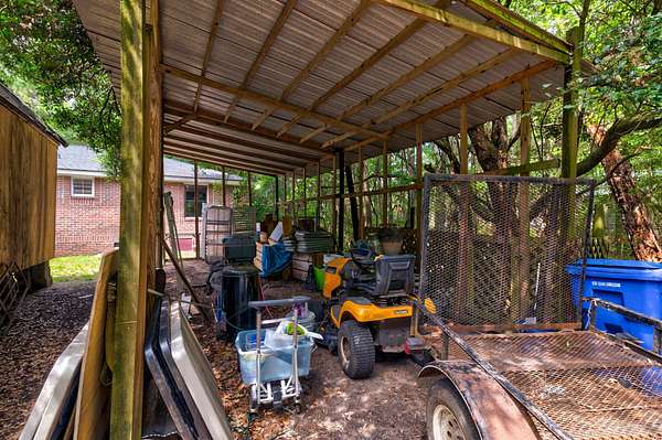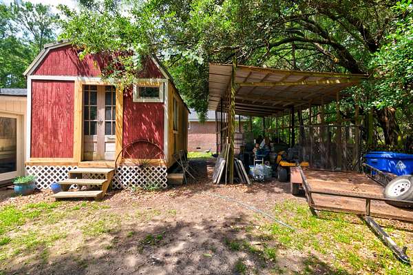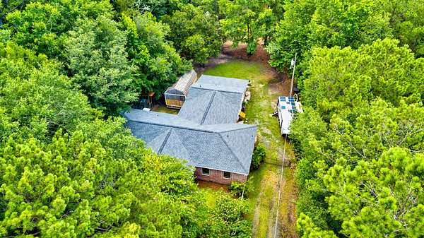 Tucked away on a 1.8-acre tree-covered lot, this charming brick ranch offers the perfect blend of peace, potential, and privacy. Surrounded by mature trees, flowering hydrangeas, and backing directly to the Francis Marion National Forest, you'll feel a world away--while still enjoying convenient access to Mount Pleasant, the historic village of McClellanville, and Georgetown via Hwy 17.Step inside to over 2,770 square feet of heated and cooled living space, including four bedrooms and three full bathrooms. A spacious foyer welcomes you into the home, flanked by a cozy living room and a large dining area. The kitchen features a gas range, stainless steel appliances, an oversized pantry, and a sunny breakfast nook overlooking the backyard. A central den provides additional space for gathering or relaxing. The expansive primary suite, part of a 2015 addition, offers two walk-in closets, a full en suite bath with a programmable toilet, and sliding door access to the fully fenced backyard. Three additional bedrooms and a second full bathroom are located on the opposite wing of the homeincluding one oversized bedroom with its private full bath, ideal for guests, hobbies, or flexible use. Step outside to enjoy 1.8 acres of peaceful outdoor living. Relax on the rear deck or get to work in the powered 337 sq ft workshop, complete with two 240V outlets. The back acre of the property is fully fenced, and the outdoor space also includes a large shed, a covered area suitable for an RV or boat, and a fenced enclosure containing a chicken coop (with power) and an aviary. Make sure to say hello to the friendly peacocks and chickensand please watch your step while exploring. Don't miss the firepit and the trail leading to the back gate entrance of Francis Marion State Park. Additional highlights include a new roof (2022), screened-in front porch, fiber internet, recently serviced septic tank, a dehumidifer and vapor barrier (2025), garbage pickup is available for a fee, abundant storage throughout, and a private setting with direct forest access. Education options include a 5-minute drive to Cape Romain Environmental Education Charter School in McClellanville. The home is also located on the Wando High School bus route for added convenience. The home offers abundant space, functionality, and flexibilitywith room to personalize and update to fit your vision. Foundation work under crawlspace is needed; a recent quote is available upon request. The rear addition (completed in 2015) was not permitted. The half bath, laundry room with utility sink, and storage room located in the rear utility area, along with the workshop, are not included in the 2,771 total heated square footage of the home.