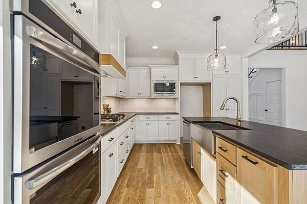 Open House 2/21 11-1PM. Home offers an open-concept layout w/ quality finishes throughout. Features include entryway wainscoting, solid select white oak flooring sanded & finished onsite, vaulted ceilings, & a brick fireplace that opens into the kitchen. The kitchen includes a custom wood island w/seating, leathered granite, tiled backsplash, pot filler, & a walk-through hidden pantry. A bright breakfast nook adds additional dining space. The main-level primary suite features double vanities, a tiled walk-in shower, soaker tub, & a spacious California closet. A second main-level bedroom provides flexible space for an office or guest room. Upstairs offers a lg bonus room, wet bar, 2 bedrooms, w/ 2 full baths. Outside features include a wooded back & side tree line, long concrete driveway, & an oversized covered back porch w/ stained wood ceilings, grilling patio & a gas log fireplace. Other highlights include a 2-car garage & tankless water heater. 4BR w/ 3 BR septic system.