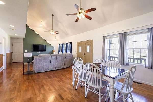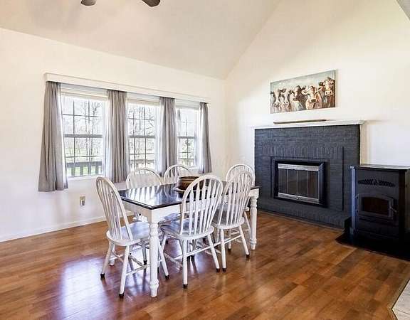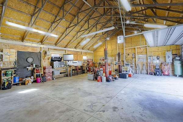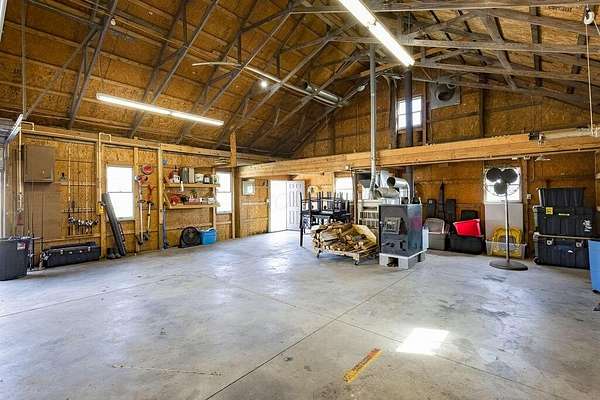 Welcome home! Northridge School District! This super clean 1.5 story custom country retreat is on nearly 2 acres and is adorned with mature shade trees and a beautiful pond. Inside you will find 3 Bedrooms and 2 Full Baths, and a semi-open floor plan, with a vaulted living room, open kitchen, and spacious second story primary bedroom with an attached bath, jacuzzi tub, and a balcony overlooking the back yard. Full basement with extra lighting and outlets; could be used as flex space now, or further finished with your creativity. Attention car and equipment enthusiast! 2 Car attached garage, with extra equipment door in the rear, as well as 3 car detached garage with loft, lift and wood burner! You won't want to miss this one! New Furnace and A/C in 2022/2023. Wood burning fireplace and pellet stove on first floor, as well as wood burning stove in the basement. Pond is on property line and is shared with neighbor.
