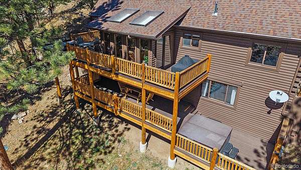 Nestled in the foothills of Evergreen, this home perfectly blends serene mountain living with convenient access to town. Set on nearly 2 acres, this private retreat features a gated, fully fenced yard, a tranquil stream, and breathtaking outdoor spaces. Imagine relaxing on the expansive deck, gathered around the sleek fire rail, listening to the stream trickle, all while surrounded by Colorado’s stunning natural beauty. Inside, the great room welcomes you with soaring ceilings and a cozy yet spacious feel. The chef’s kitchen is loaded with high-end upgrades, balancing style and functionality. Adjacent to the great room, an incredible sunroom bathes the home in natural light, offering a peaceful spot to enjoy year-round. The lofted primary suite serves as a luxurious sanctuary, while the walk-out lower level provides a flexible space for a home office, gym, or guest quarters. Even envision a future 4th bedroom created here. Additional features like a whole-home generator and thoughtful details throughout ensure comfort and peace of mind. And with Evergreen’s charming downtown, world class skiing, and Denver just a short drive away, this property offers the best of mountain living with urban convenience. Don’t miss your chance to make this extraordinary home yours!