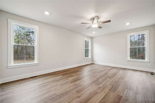 This is a to-be built home! The Crenshaw plan by Vertical Builders offers 4 bedrooms, 2.5 baths, and a first-floor primary suite! Off the entryway, a versatile flex room could be used in a number of ways including as a formal dining room or spacious home office. The spacious kitchen features a large island with a barstool area, a walk-in pantry, and an adjoining dining area. The heart of the home is the family room that is open to the kitchen with access to the rear covered porch, perfect for indoor-outdoor living. The first-floor primary suite offers an oversized walk-in closet and an ensuite bath with dual vanities, a walk-in shower, and a water closet. A powder room for guests complete the first floor. Upstairs, you'll find a spacious loft that makes a great secondary entertainment space. Bedrooms 2 and 3 with walk-in closets. Bedroom 4 with double door closet. A full hall bath with tub/shower combo completes the second floor. The exterior offers covered porches at both the front and back, perfect for relaxing evenings. Meadow Grove is a thoughtfully designed community with abundant green space, a community pond, and spacious homesites ranging from 2 to 4.7 acres. Here, you'll enjoy breathtaking natural views and quiet privacy in the scenic beauty of Powhatan!