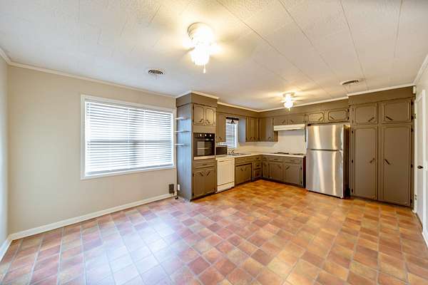 - Spacious Kitchen/Dining/Breakfast Nook area with modern ceramic tile.
