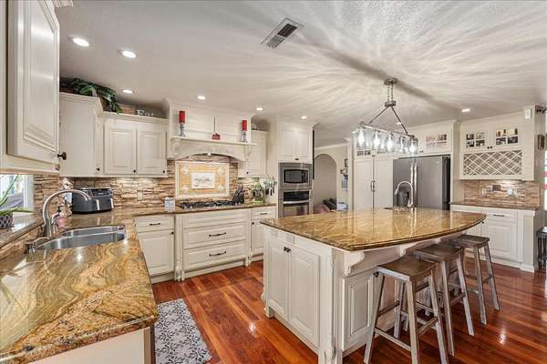 Beautiful custom country home located at the edge of San Andreas, set on 3 fully usable acres ideal for horses, animals, or hobby farming. This thoughtfully designed home features 3 bedrooms plus an office area, a welcoming living room, spacious great room, and a formal dining area providing an ideal layout for both everyday living and entertaining. The gourmet kitchen is a standout, equipped with top-of-the-line stainless steel appliances and designed to flow seamlessly into the open concept living spaces. Gorgeous mahogany floors enhance many of the rooms, adding warmth and timeless elegance throughout the home. Outside, the property truly shines. Lush, well maintained landscaping creates an inviting outdoor living environment, highlighted by a serene koi pond, expansive Trex deck, and beautifully usable grounds. New fencing and cross-fencing add functionality and flexibility for a variety of uses. Additional features include a 2-car garage with carport, abundant parking, and leased solar for energy efficiency and lower utility bills.