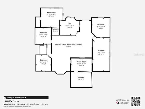 - Bathroom x 3, Bedroom x 3, Bonus Room, Dining Room, Game Room, Kitchen, Laundry, Living Room, Office