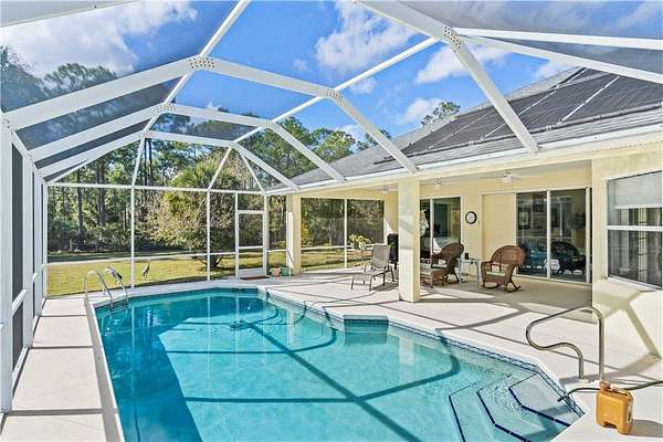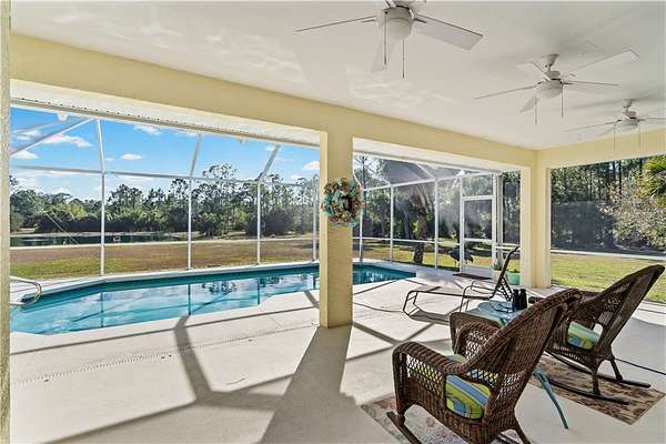 Escape to your private 5-acre sanctuary. Tucked behind a gated entrance & framed by lush woods & serene pond, this estate offers the ultimate country lifestyle. Inside, volume ceilings, numerous windows, & French doors flood the home w/natural light. The chef's kitchen features a professional gas range, granite island, & wine rack perfect for hosting. The outdoor living space is a true showstopper w/expansive covered patio, screened pool & dedicated cabana bath so it's the perfect setup for poolside entertaining. Experience peace of mind w/a 2019 roof, 2020 A/C, & spacious 3-car garage.