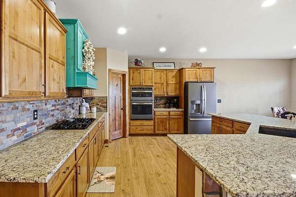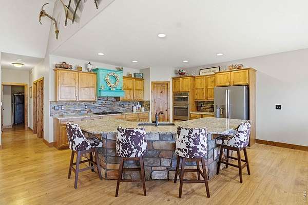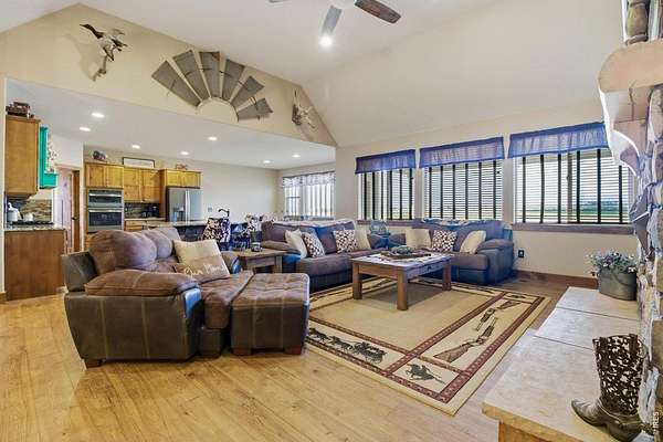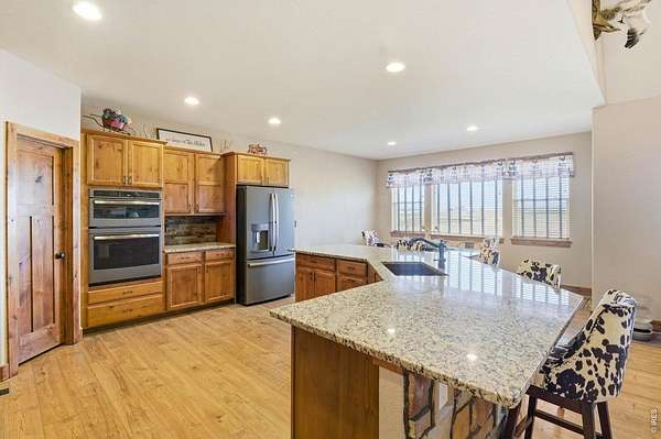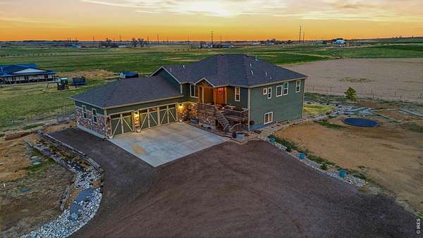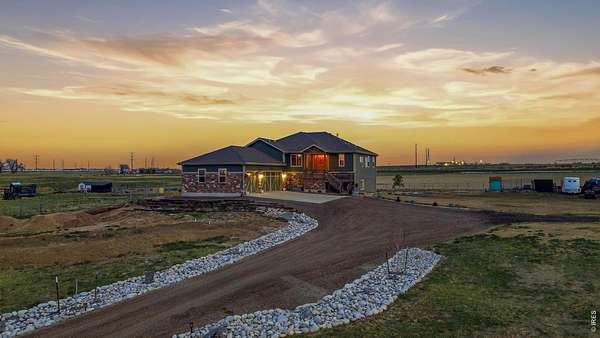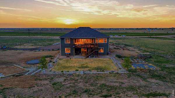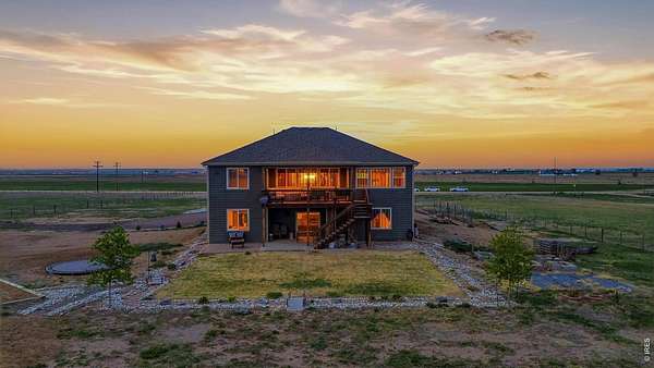 If you've been waiting for the one that actually has it all, this is it. Welcome to 6 acres of elevated country living, where wide open skies, quiet mornings, and Colorado sunsets become your everyday backdrop. This custom built 5 bed, 3 bath home, offered for the very first time, was designed for those who want space, freedom, and a home that truly lives as good as it looks. Step inside and feel it immediately. Open, airy, and built to gather. The kitchen is a showstopper with rich wood cabinetry, granite countertops, double ovens, and a gas range ready for everything from slow Sunday mornings to full house holiday dinners. Downstairs, the fully finished walk out basement gives you room to live your way. Think game nights, guests, second living space, or multi generational living without compromise. And with on demand hot water, you will never run out no matter how full the house gets. Outside is where this property really sets itself apart. A beautifully landscaped yard with drip lines already in place. Animal shelters ready to go. And 4 newly fenced acres giving you the freedom to bring your horses, build your setup, or finally start that homestead you have been dreaming about. Room for trailers. Room for toys. Room to breathe. All of it just a short drive to town. This is your chance to own the space you've been dreaming about. Opportunities like this do not come around often.