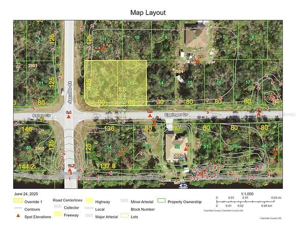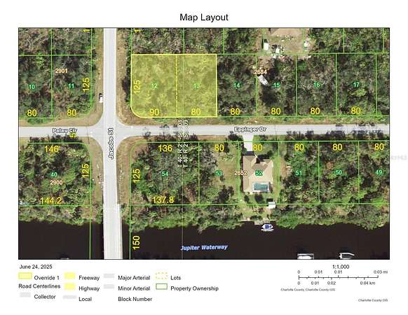 Double Lot For Sale - 1386 Jacobs Street and 1563 Eppinger Drive. The property is 170 x 125 in size with a Northern Rear exposure. No HOA or Deed Restrictions to deal with. Electricity is available now, well and septic required. Located in a growing area of Port Charlotte conveniently located near shopping, dinning, entertainment and only 15 minutes to the Beach. The double lots gives you plenty of space to build your new home with a little extra privacy or extra room for a detached garage. Buy as an investment for the future or build your new home, but either way Secure Your Piece of Paradise Today!