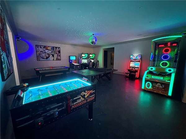 Gold Winner of the 2025 OBIE awards! Privacy in the City! Sitting on almost 2 acres set back 150 feet off the road, this NEW CONSTRUCTION MODERN GATED ESTATE provides PRIVACY and SECURITY on all four sides. AMAZING LOCATION with HUGE LEVEL LOT in the most prestigious zipcode in Atlanta, only 2 minutes from Westminster private school and a quick ride to the airport. Priced $3Million below appraised value!! Designed and built by Stephanie Bell of Bella Fine Homes, this is a home you will never want to leave!! Focusing on superior quality and attention to detail. Some of the amenities include a separate very luxurious 1250 sq ft guest house, space for 40 cars! 16' wide Bellagio style dancing water fountain in front of home, GLASS BOTTOM POOL looking down into a TWO LANE BOWLING ALLEY, 9 hole putting green with 3 bunkers, pickleball court, basketball court, 12 person spa, 5 Fire Features, Heated and conditioned cabana with full Service bar, dual beer tap and lounge area. Heated covered patio with outdoor kitchen, gas grill and Green egg. Outdoor bathroom and pool shower. MAIN LEVEL SPA with full spectrum infrared sauna w/ chromotherapy light, steam room w/ chromotherapy light, hair wash station, 2 hair/makeup stations and massage table. Terrace level full service bar, billiards room, Poker Room, Gym with full bath, patio with water wall, arcade room, movie theatre and 8 person adult sized custom built bunk room with full bath. 4 laundry rooms with garment steamer and built-in ironing board. Full automation of all light fixtures throughout home. Full automation of shades. Sonos sound system with in-ceiling speakers throughout home. This home is being sold fully furnished with high end furniture, decor and art. There has never been a home built like this in Atlanta!! Crypto Accepted. Build out recording studio available.