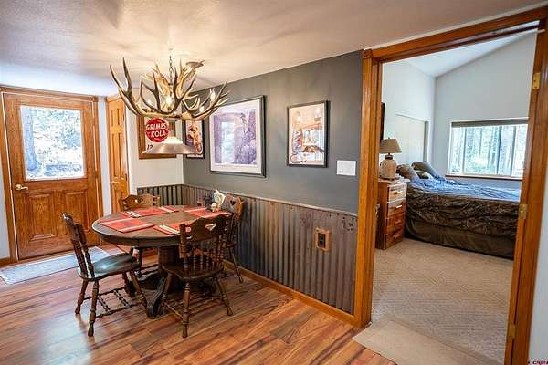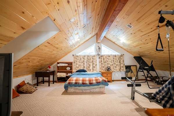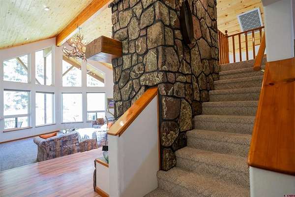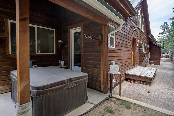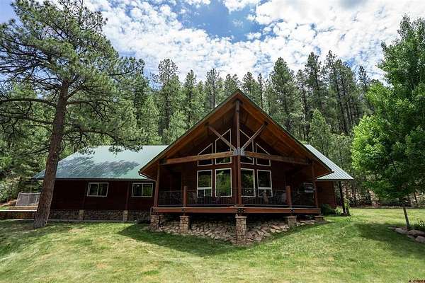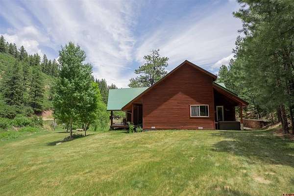 Justin D Osborn, The Wells Group of Durango, LLC, O: 970-946-3935, justin@wellsgroupdurango.com, http://southwestcoloradoranchbrokers.com/: 2100 sq ft custom home on 5+ wooded acres with no covenants and no HOA. Texas Creek runs seasonally across the property and fills the pond in the Spring. Oversized garage provides plenty of room for vehicles and toys. Owned by the original owner, this well maintained property is extremely private with a remote setting, yet is only 350 yards from paved CR 501. Vallecito Lake is only 7 miles away, making this an excellent property for short-term vacation rentals. From the large covered porch, to the hot tub in a private setting, you'll have a hard time determining where to take in your morning coffee. The main focal point inside is the huge great room with vaulted ceilings, floor-to-ceiling windows, and a stone fireplace made from rock harvested from the property. Located at 7320' elevation. Annual taxes are $2,725. Wildlife are frequently seen on the property including deer, turkey, and seasonally elk.