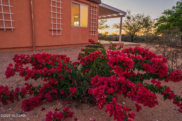 - Adjacent to Wash, Covered, Cul-de-Sac, East/West Exposure, Native Plants, Rain Barrel/Cistern(s), Shrubs