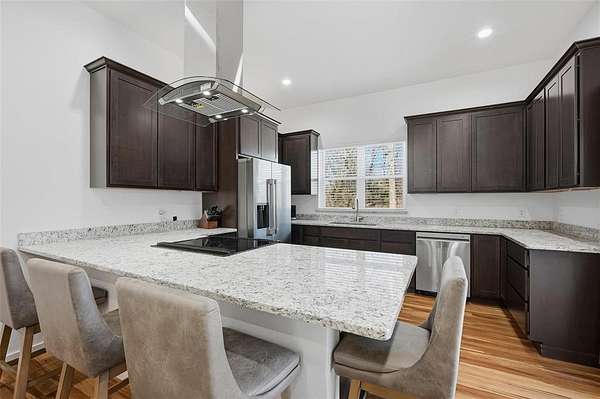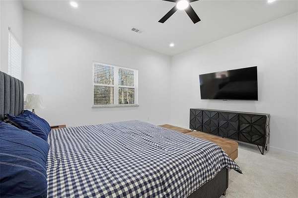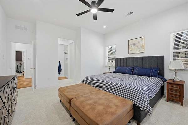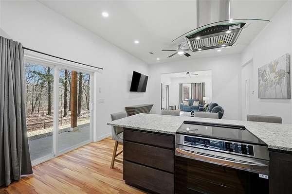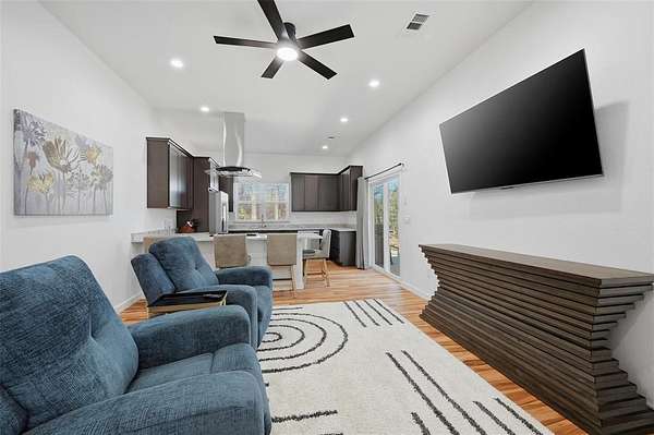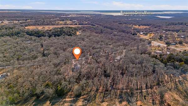 Tucked among mature trees on 2.39 peaceful acres, this beautifully crafted custom-built home offers the perfect blend of privacy, comfort, and lakefront living just minutes from Lake Texoma and near Bucomb Creek Marina. Designed with quality and functionality in mind, the home features an open-concept layout with vaulted ceilings, abundant natural light, and warm wood flooring throughout the main living area. The spacious split living room flows seamlessly into the kitchen, complete with ample cabinet and counter space, and a breakfast bar ideal for gathering and entertaining. Multiple seating areas create flexible living or hosting options while large windows frame serene wooded views. The Primary suite is generously sized and thoughtfully designed, offering a private retreat with an ensuite, a large walk-in shower, and a large walk-in closet ready for you to design. The guest bedroom offers comfortable accommodations, with plenty of space and clean lines in neutral tones. Outside, the expansive acre lot provides ample room to add a shop, workshop, or storage building for your lake toys or RV for friends and family to come visit. Find yourself sitting on your porch, facing your treed creek, enjoying your tranquil life in your piece of nature.