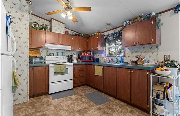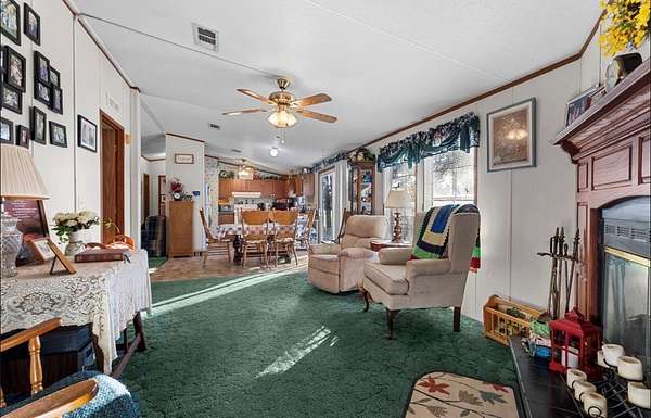 - Blinds, Ceiling Fans, Convection Oven, Electric Range, Fireplace, Laminate Counter, Laundry/Utility Room, Living Room, Open Floor Plan, Separate Dining Room, w/ Hookups